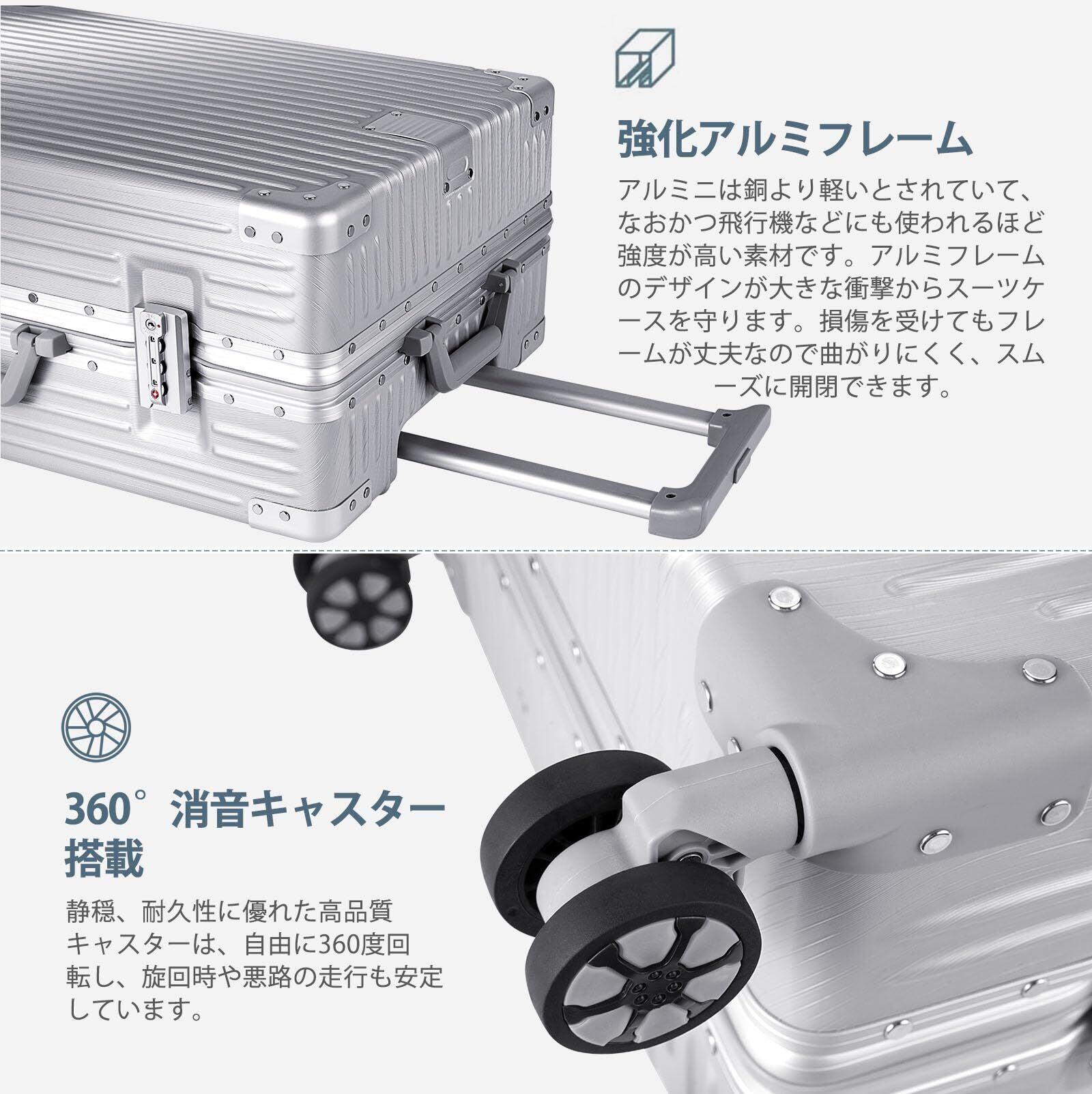 ◆【軽量&携帯性】アルミフレームスーツケースは軽量化設計で、あなたの負担を軽減し、旅をより快適にしてくれます。 また、自動リセットハンドルと360°静音キャスターを搭載し、空港、新幹線とバスの間に簡単に移動できます。