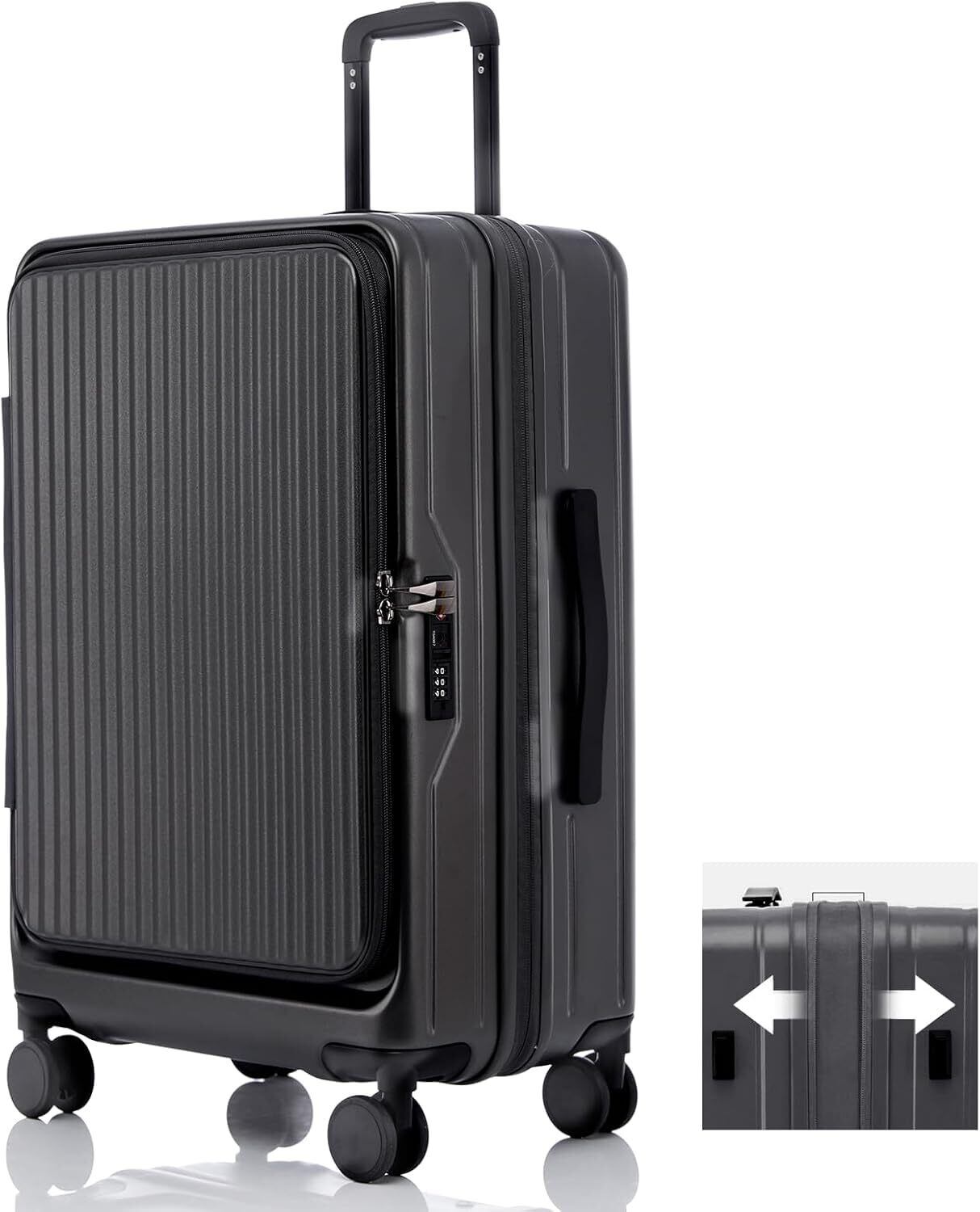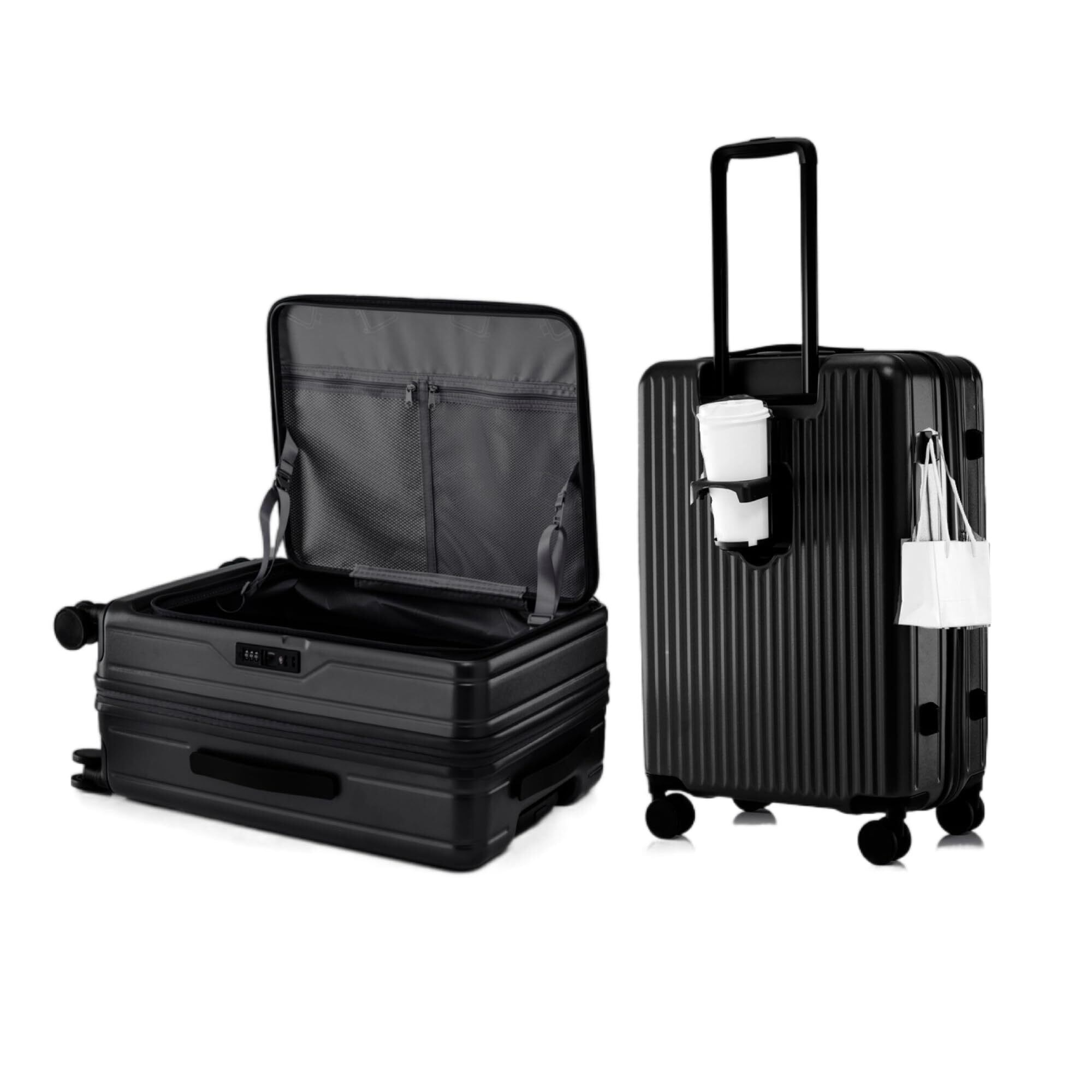 [Yuweijie] スーツケース キャリーケース 片開き ハード 拡張機能付き フロントオープン 大容量 機内持ち込み 超軽量 ファスナータイプ カップホルダー付き TSAロック キャリーバッグ 横開き ビジネス 出張 1-3泊 39l~47リットル ダークブラック (Sサイズ 35*23*55cm, 20インチ)