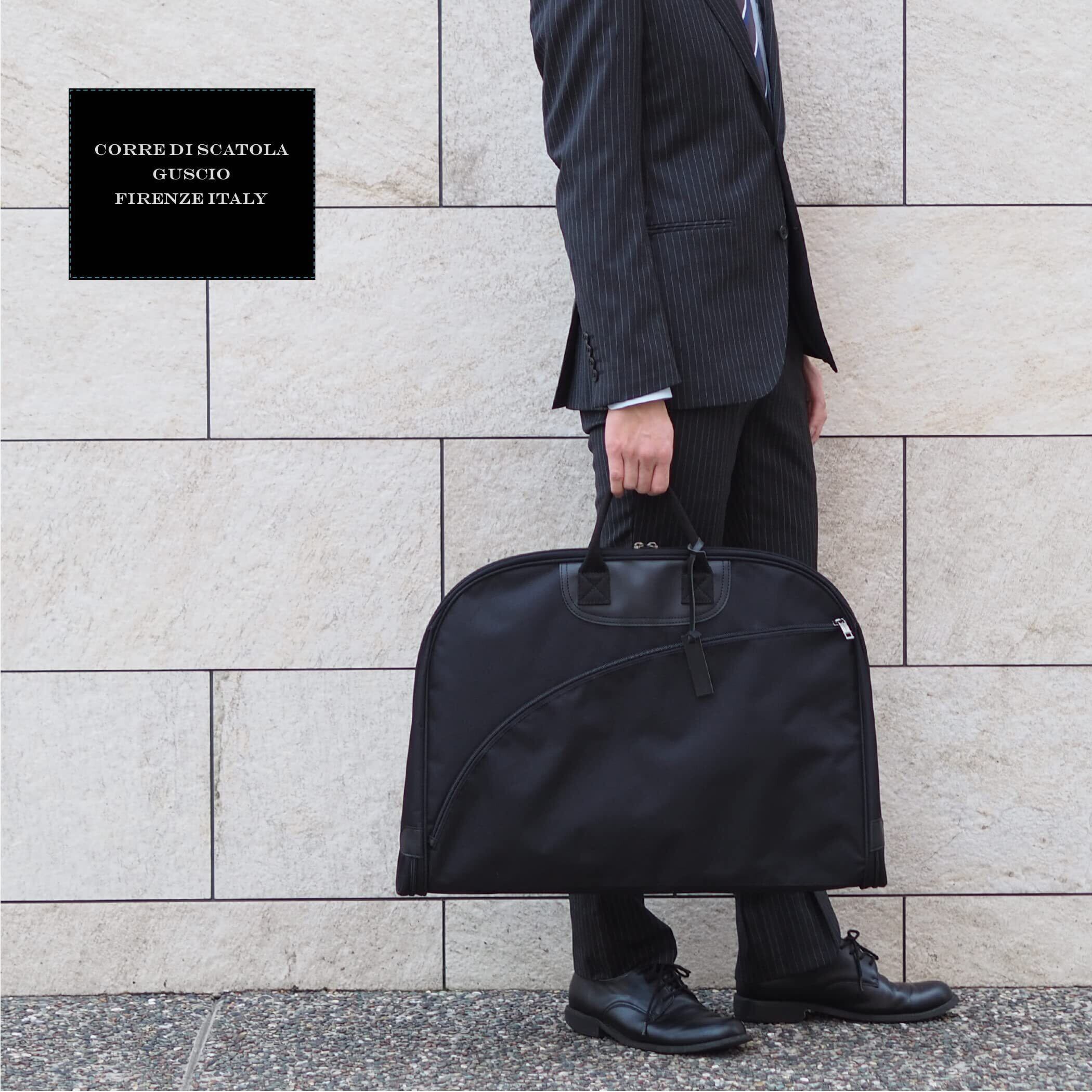 【グッシオウォーモ】ガーメントバッグ ハンガー付き スーツ ビジネス 出張 形崩れ防止【商品改良済み】 イタリアンスタイルデザイン キャリー通し 冠婚葬祭 メンズ GUSCIO 195007 (ブラック)