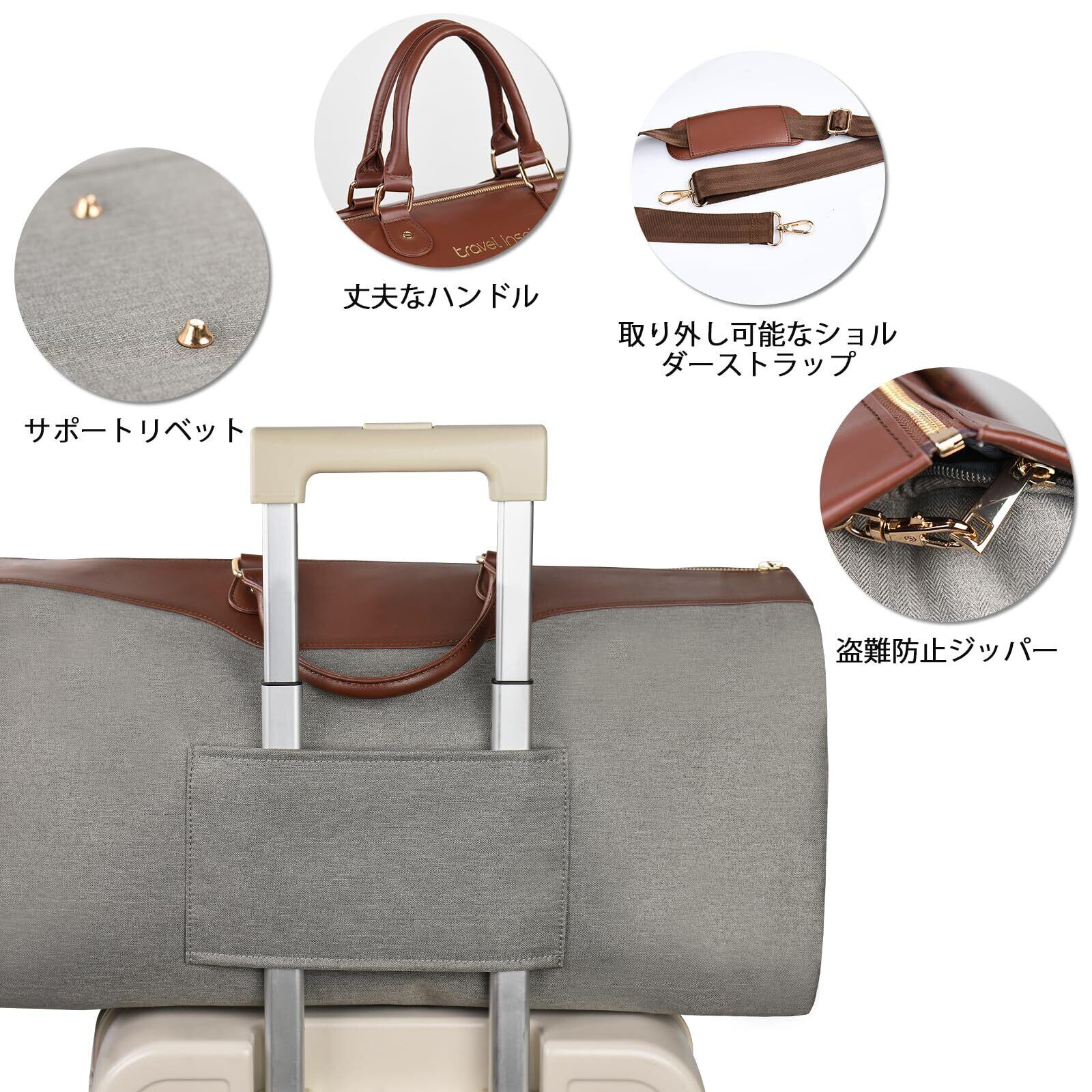 [travel inspira] ガーメントバッグ 旅行用 乾湿分離 コンバーチブル衣類バッグ スーツ収納/靴収納ダッフル スーツカバー 型 くずれ防止 ボストンバッグ 防水 防塵ショルダーバッグ 出張 就活 スポーツ ジム
