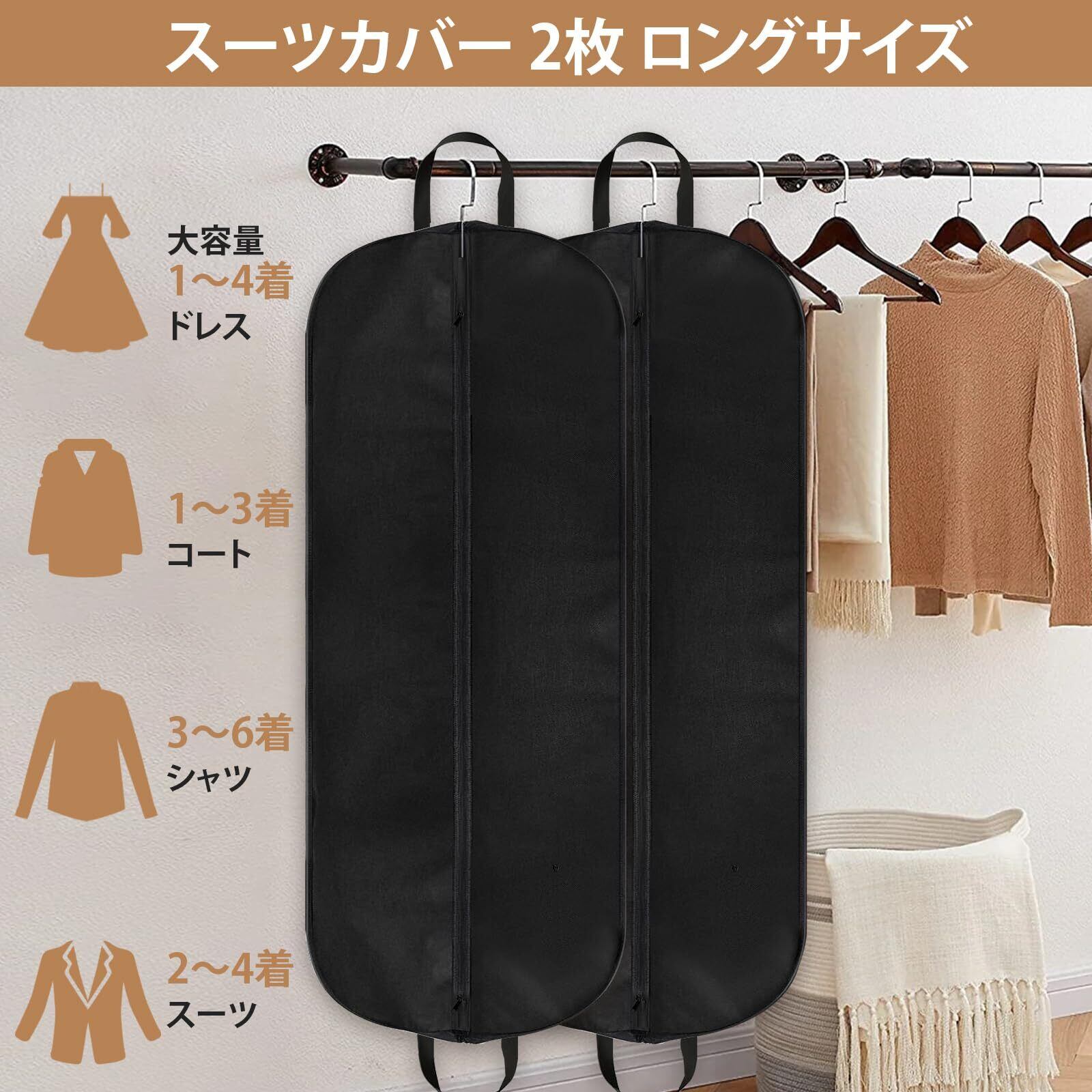 HIMOMO スーツカバー 2セット 不織布 衣類カバー ガーメントバッグ スーツ 持ち運び レディース メンズ 幅60cm×高さ140cm ジッパー付き