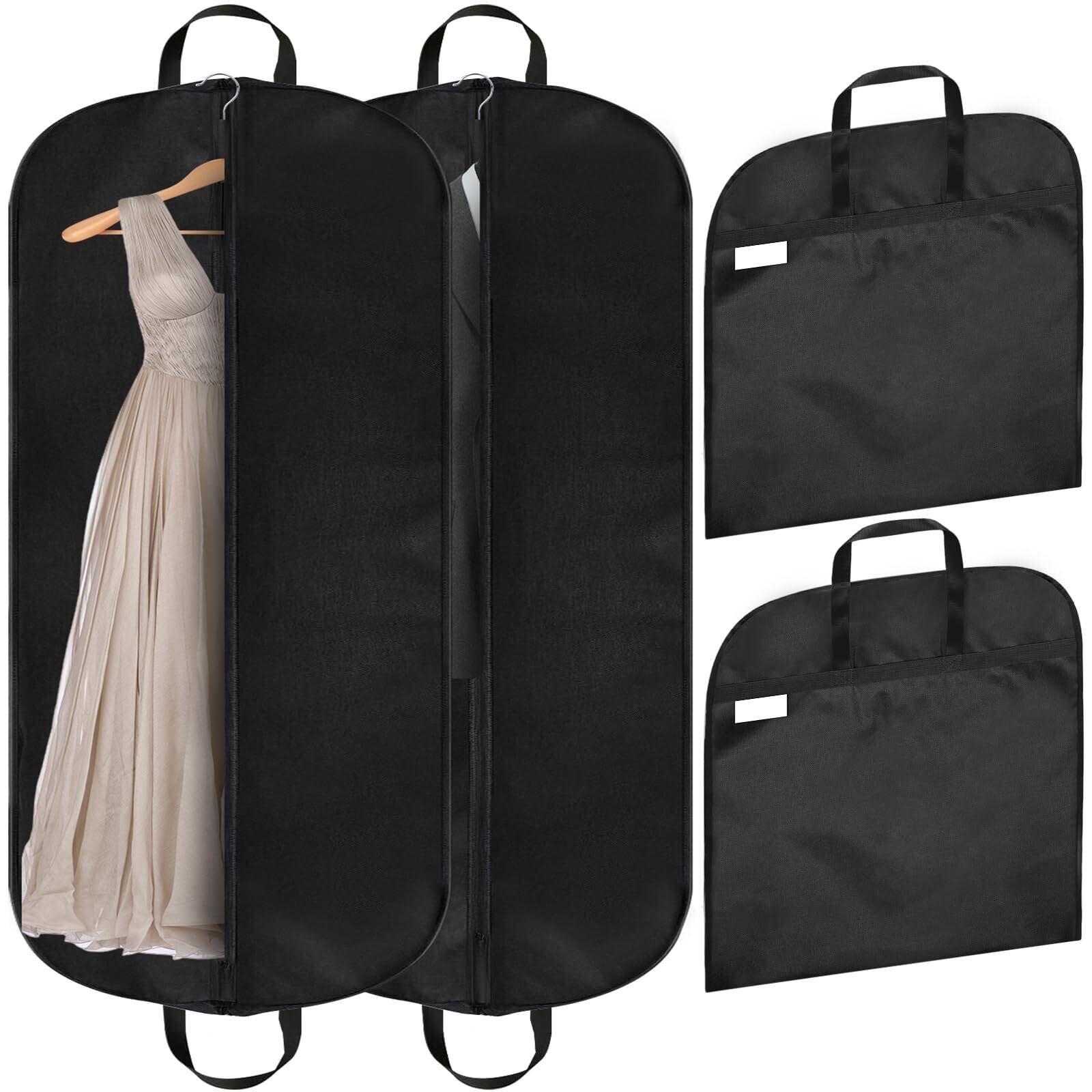 【コンパクト設計と多目的使用】スーツカバー 高さ140cm×幅約60cmの特大サイズで、2枚組セット。膝丈衣類(スーツ、コート、ドレスなど)の収納や移動に最適。出張や結婚式などの重要な場面で、衣類・靴・バッグをまとめて保護。衣類の丸め作業を軽減し、毛玉やホコリが付きやすいアイテムの保管にも便利です。
