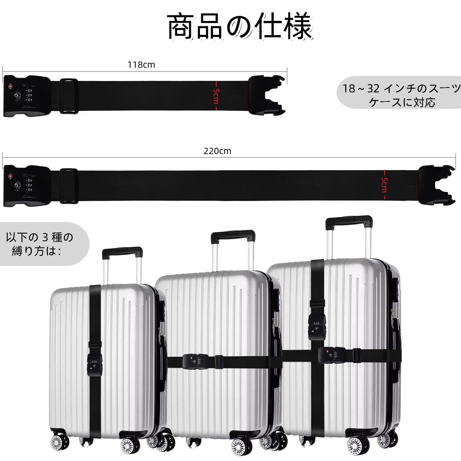 【目立つマークと調節自在な対応】 スーツケースベルトには色落ちしにくい目立つマークが付いており、空港での識別が簡単です。調節可能なスライドバックルで、どんなサイズのスーツケースやキャリーケースにも対応できます。