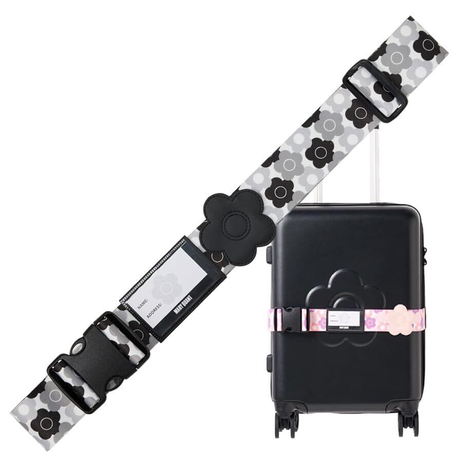 ロゴのワンポイントと総柄デイジーが散りばめられたスーツケースベルトは、MARY QUANTのスーツケースはもちろん、お持ちのスーツケースに付けても大人かわいいアイテムです! スーツケースの目印や開封防止にネームカード付で、ランダムなデイジー柄がスーツケースを華やかに演出してくれます。