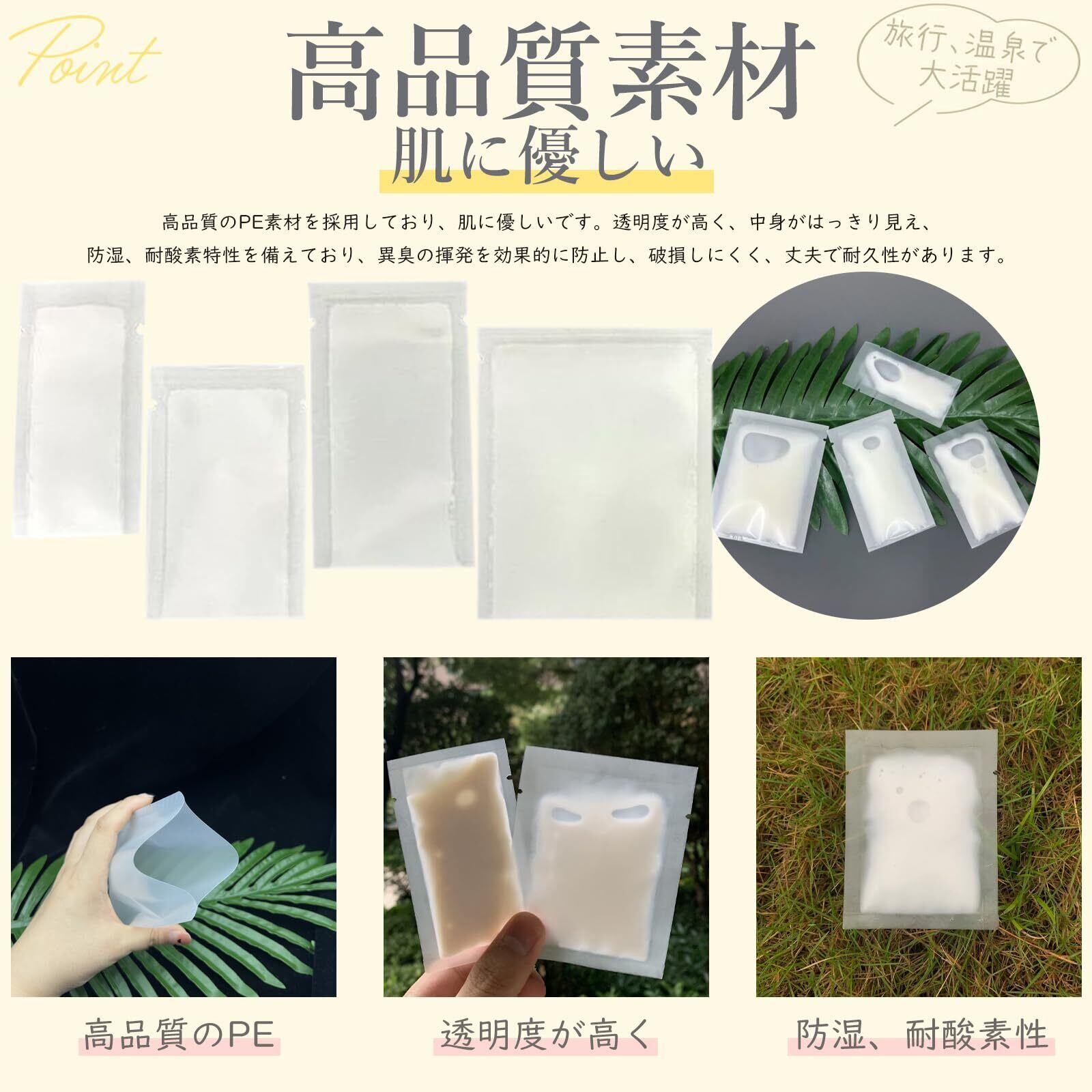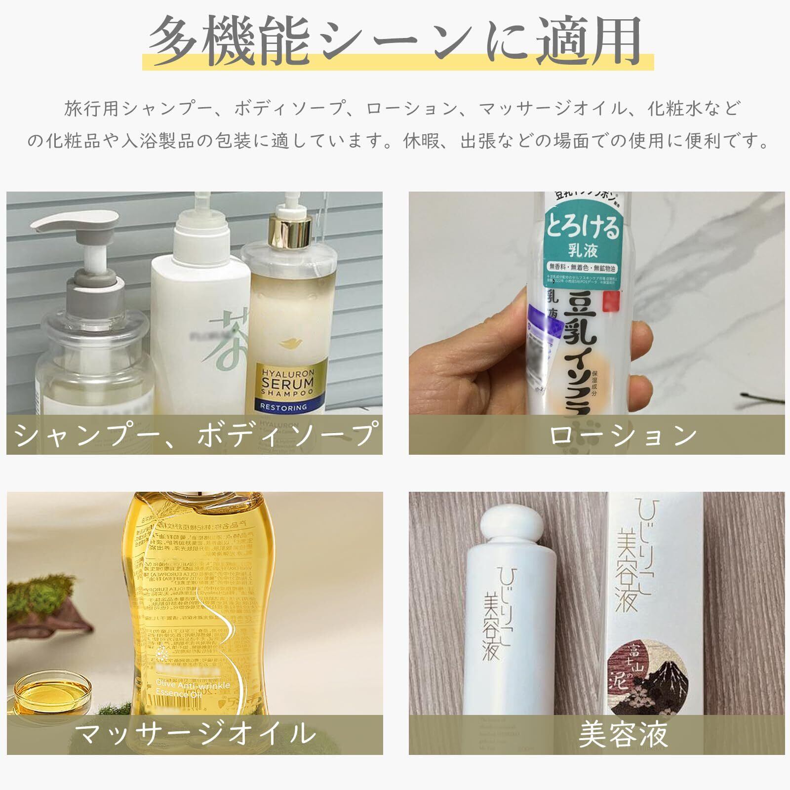 【多機能シーンに適用】旅行用シャンプー、ボディソープ、ローション、マッサージオイル、化粧水などの化粧品や入浴製品の包装に適しています。また、香水のサンプルを分けたり、イベントで受け取る無料試用パックを保管したり、休暇、出張などの場面での使用に便利です。