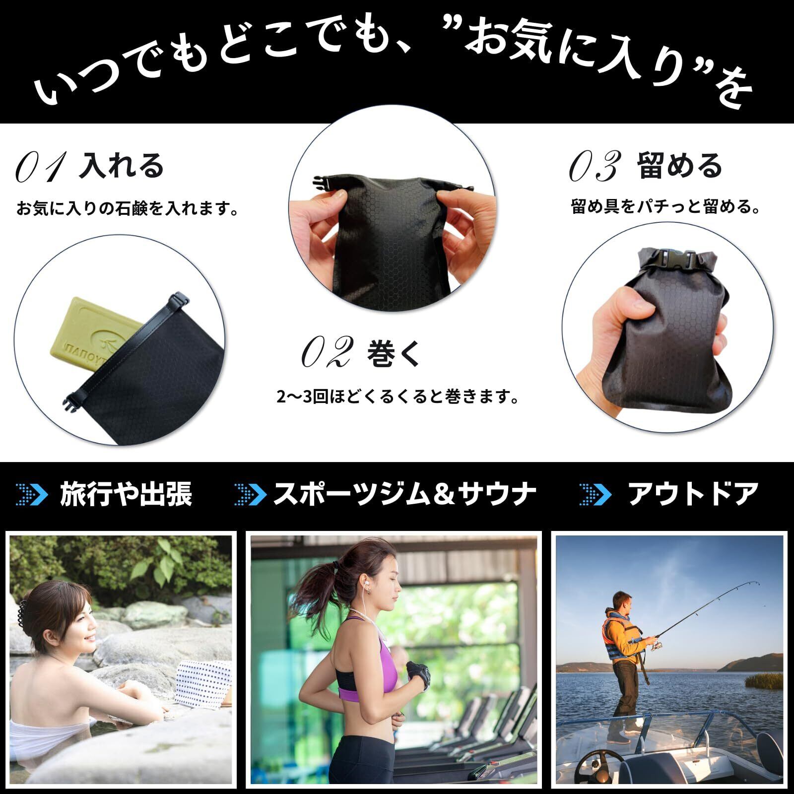 【持ち運びの便利さを追求】プラスチックのケースと違い、バッグの中に入れてもかさばりません。毎日利用するスポーツジムやサウナなどでの使用、またアウトドアや旅行、出張といった外出時にも持ち運びしやすく、いつでもどこでもお気に入りの石鹸を使用できます。