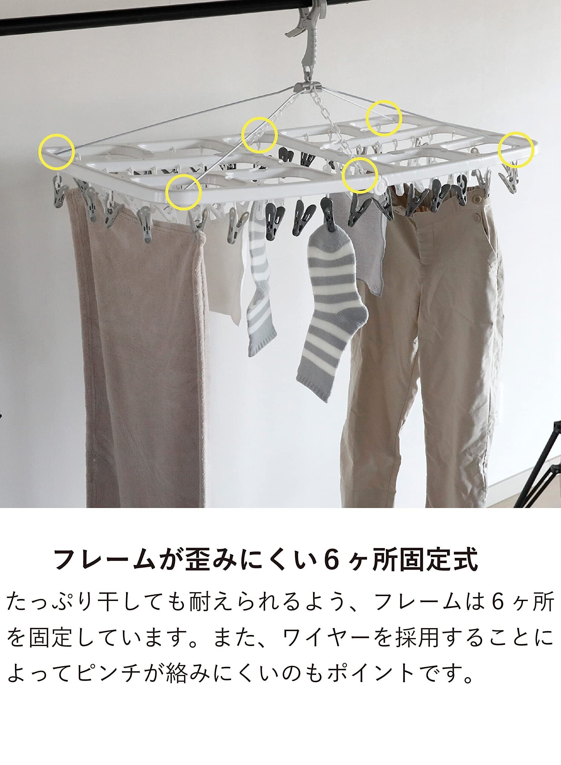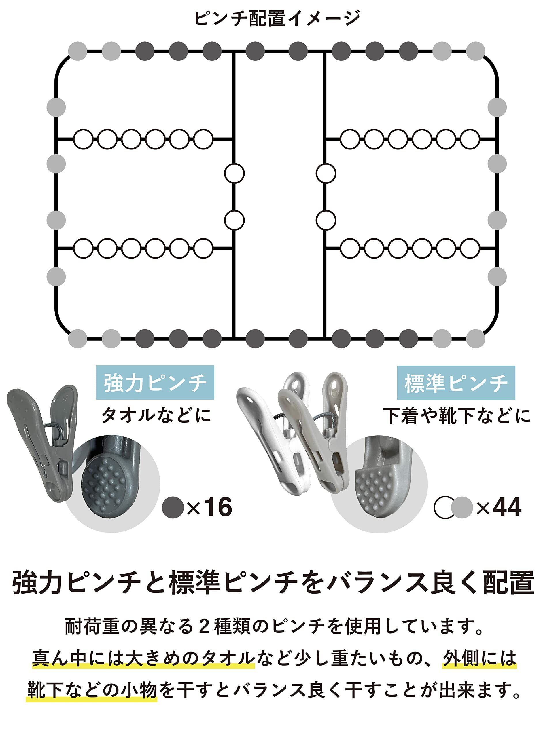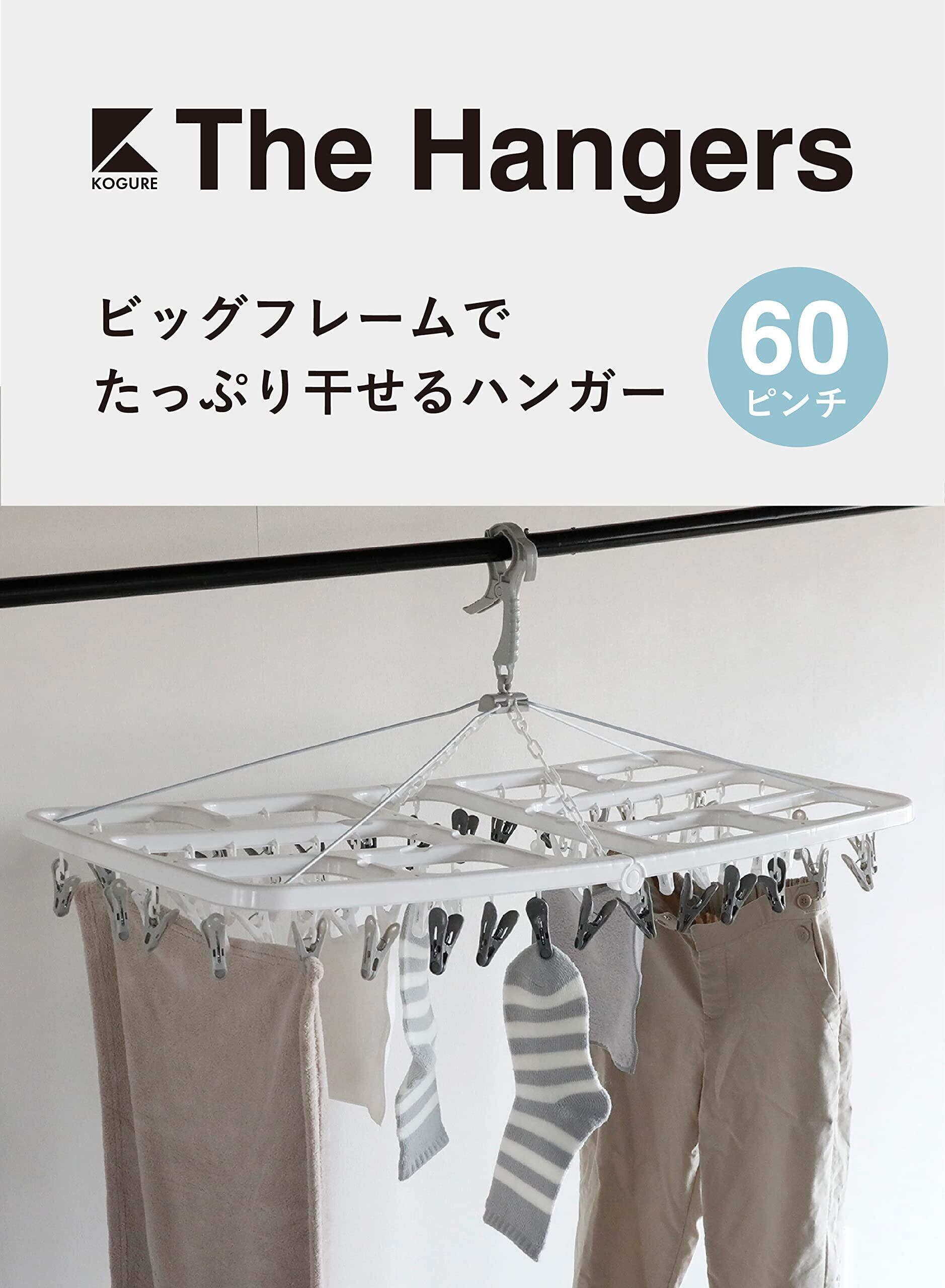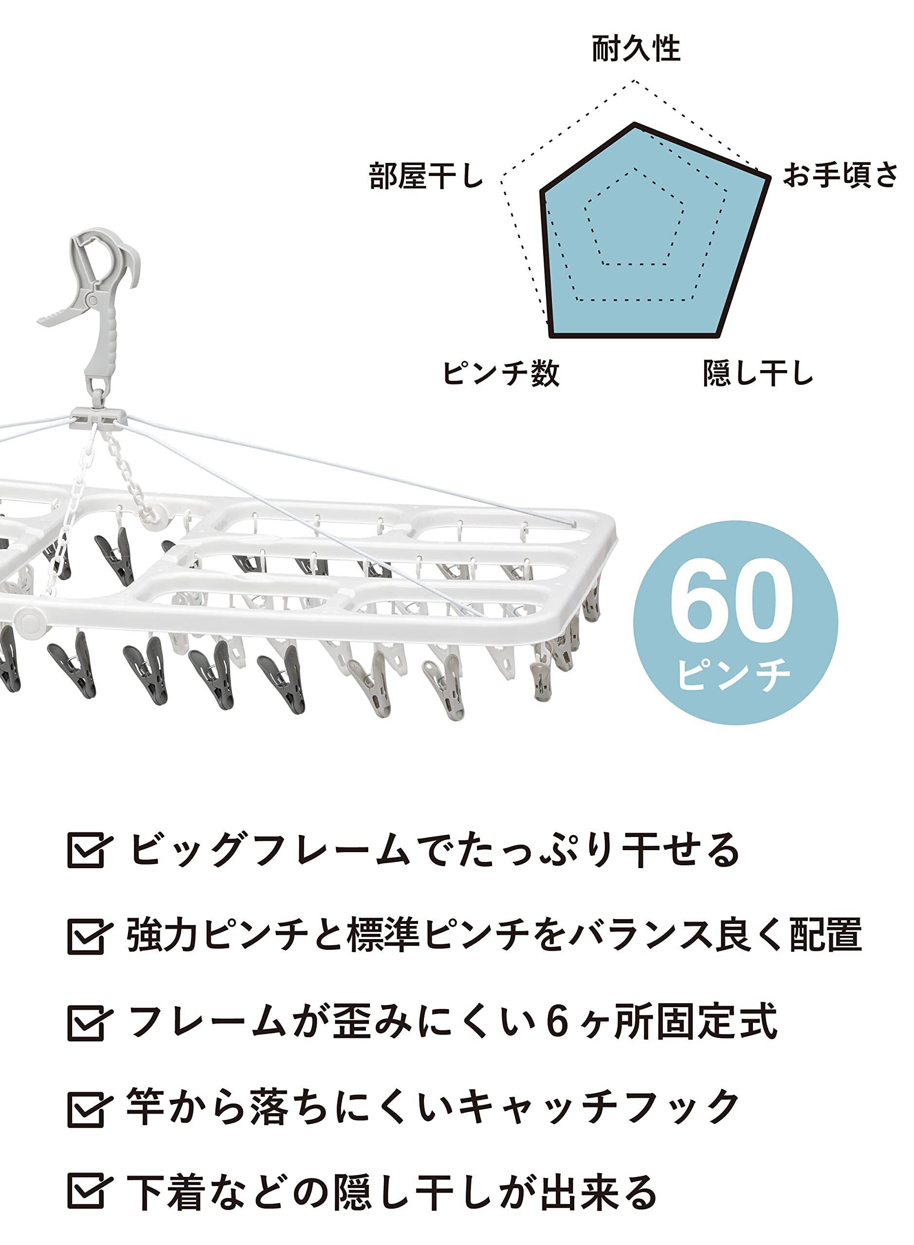 シービージャパン 合金鋼 洗濯物干し ピンチハンガー 60ピンチ ホワイト×グレー 屋外干しでも安心キャッチフック 干し分けピンチ 歪みにくい6か所固定 スチールワイヤー&プラチェーン 隠し干しフレーム ランドリーハンガー60P Kogure THE HANGERS