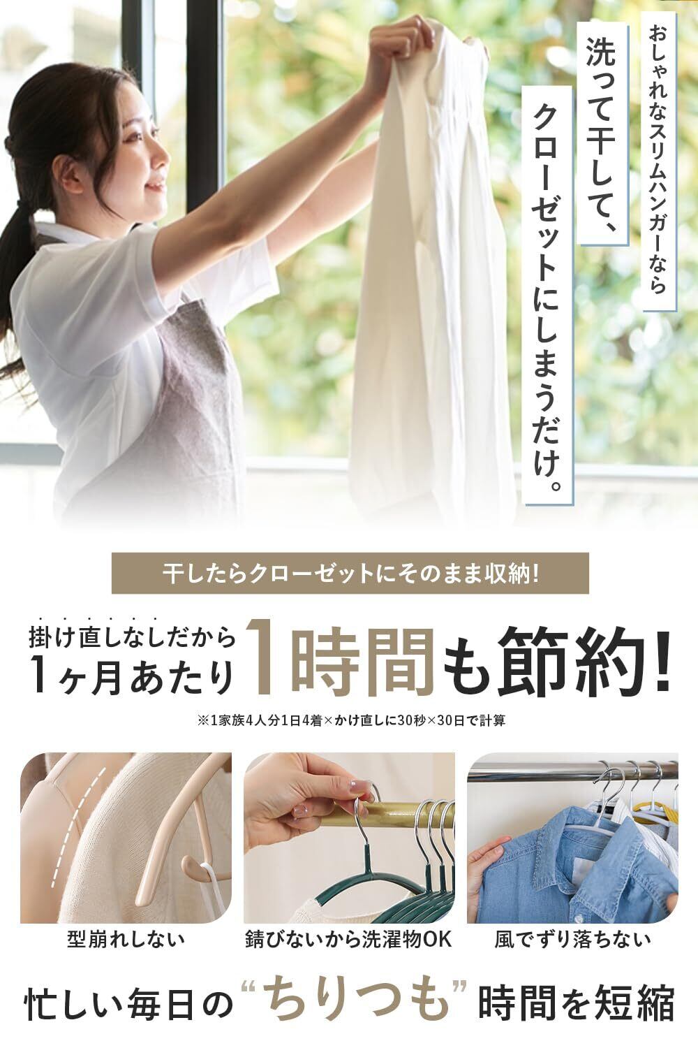 【収納力UP】厚さわずか1cm。スリムタイプのハンガーなので、かさばらず、クローゼットの省スペース収納を実現しました。