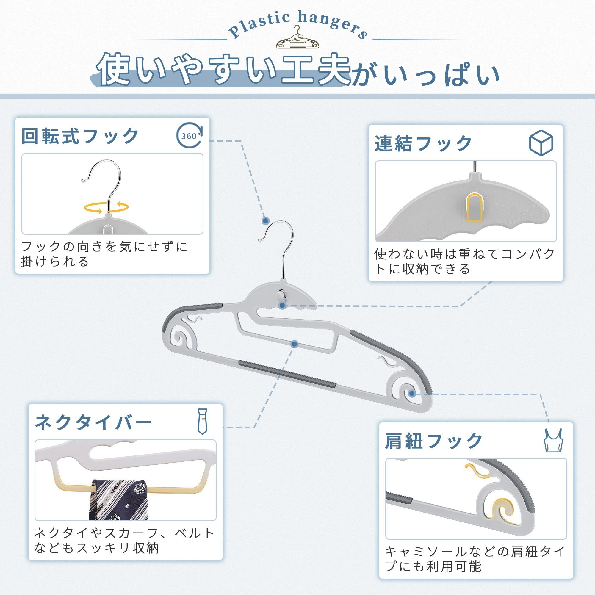 【 限定】チチロバ(TITIROBA) ハンガー すべらない 襟が伸びない かたくずれ防止 連結フック付き 多機能 おしゃれ 30本組 グレー