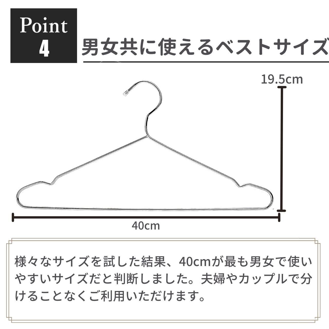 【理想的なユニセックスサイズ&子供用】おとな用は幅40cmにしており、男性も女性も使えるサイズになっております。また、大人用サイズ(40cm x 19.5cm)・子供用サイズ(30.5cm x 18cm)の2サイズ展開なので、お子様がいるご家庭でも家中のハンガーを統一できます。