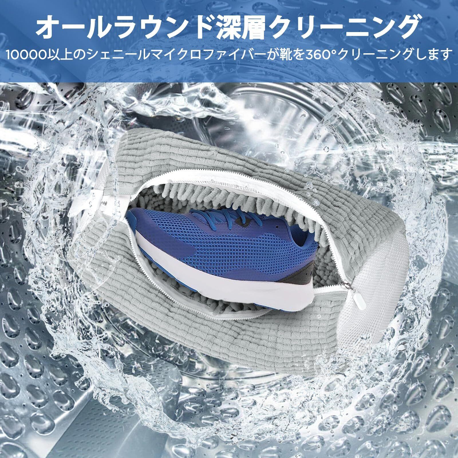 【オールラウンドで効率的な洗浄】靴ランドリーバッグには10,000本以上のシェニールマイクロファイバーの毛が使用されており、靴を360°オールラウンドに徹底的に洗浄できます。また、マイクロファイバーの毛は柔らかく繊細で、洗濯中に靴を傷つけません。