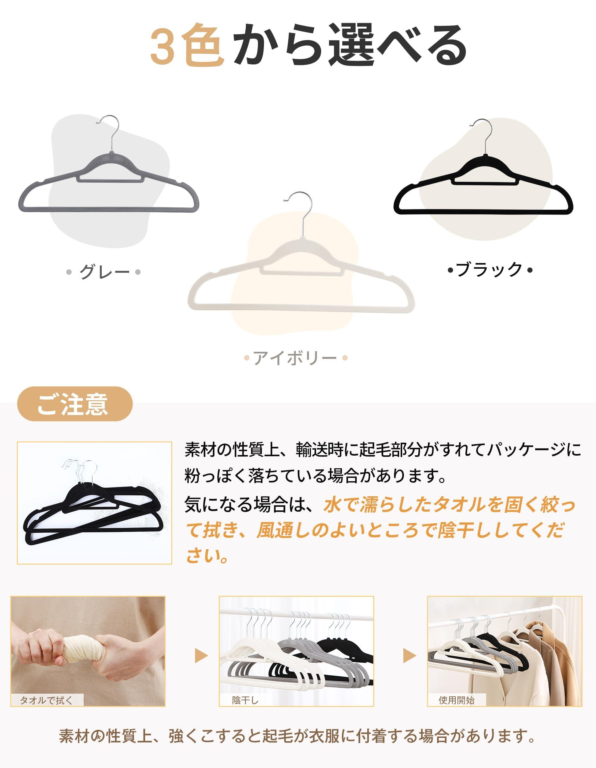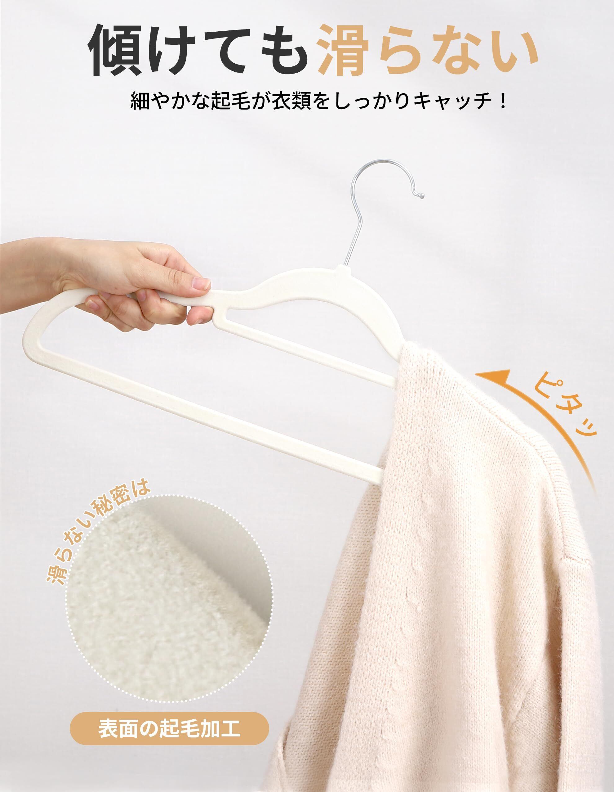 【傾けてもすべらない】起毛加工を施してありますので、衣類が滑り落ちない。