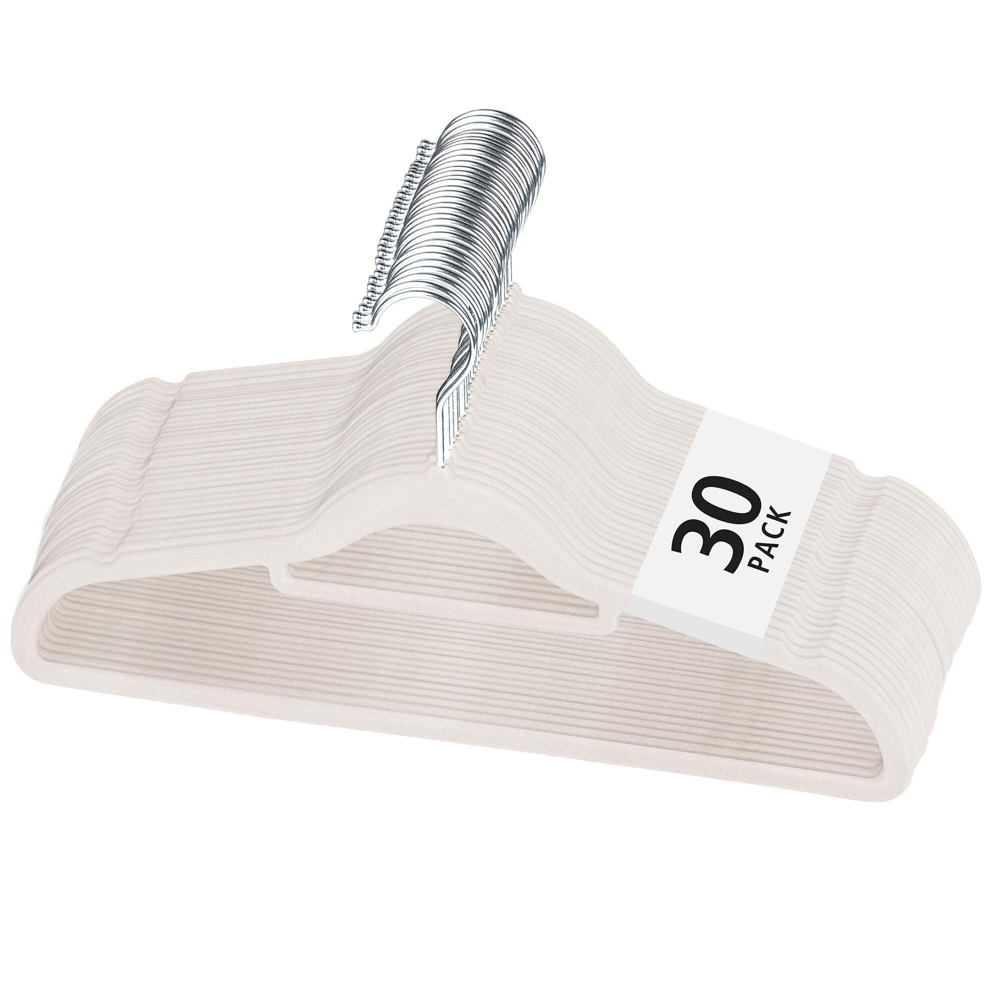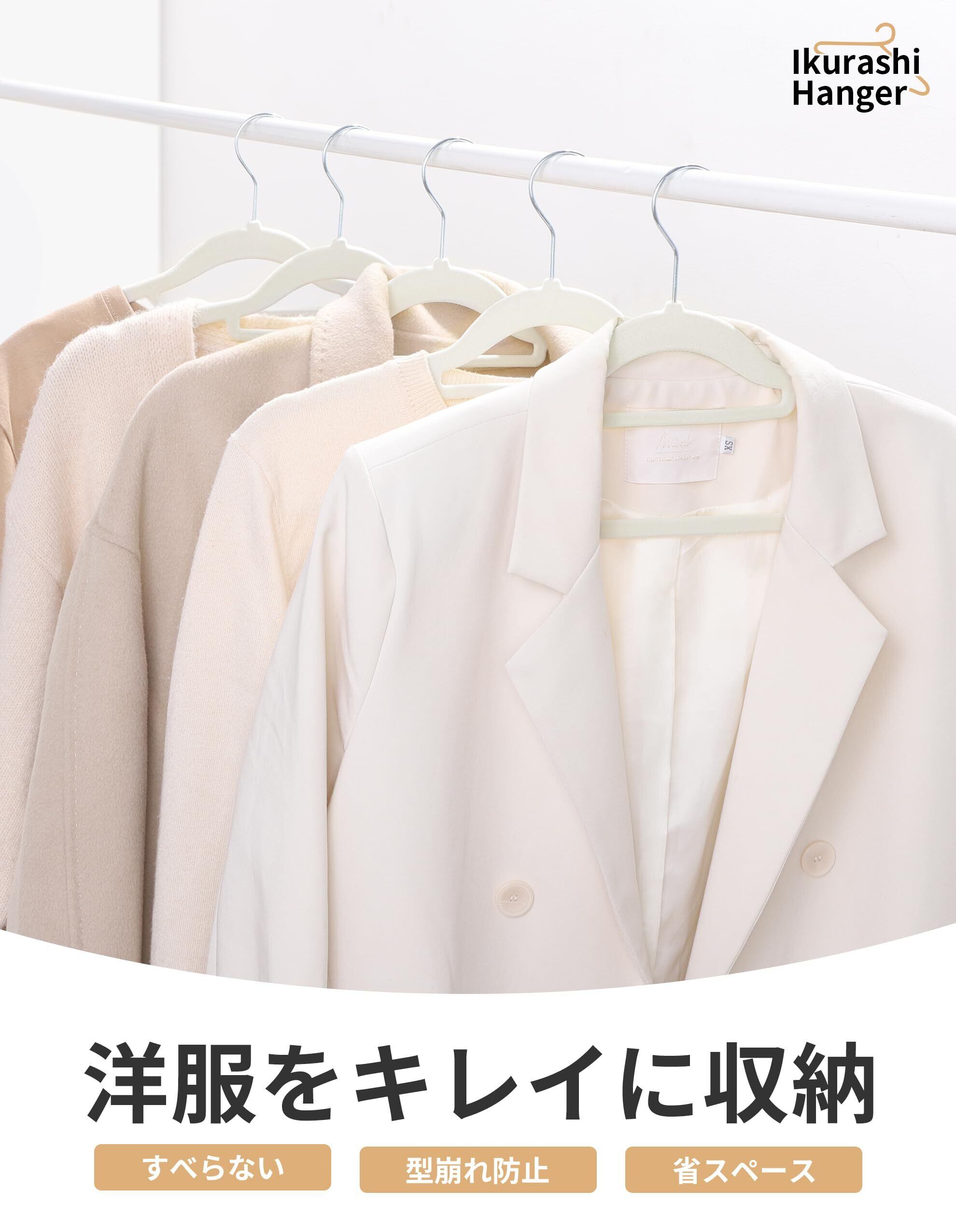 【 限定】アイクラシ(Ikurashi) ハンガー すべらない 30本組 かたくずれ防止 跡がつかない スリム ベルベット製 アイボリー