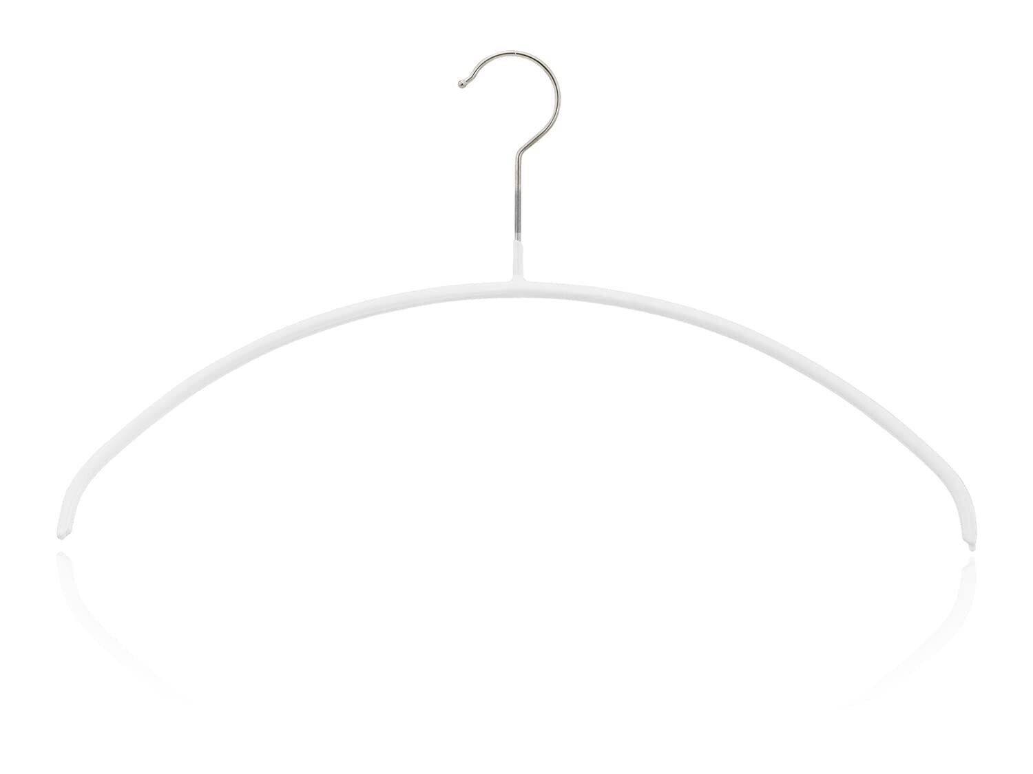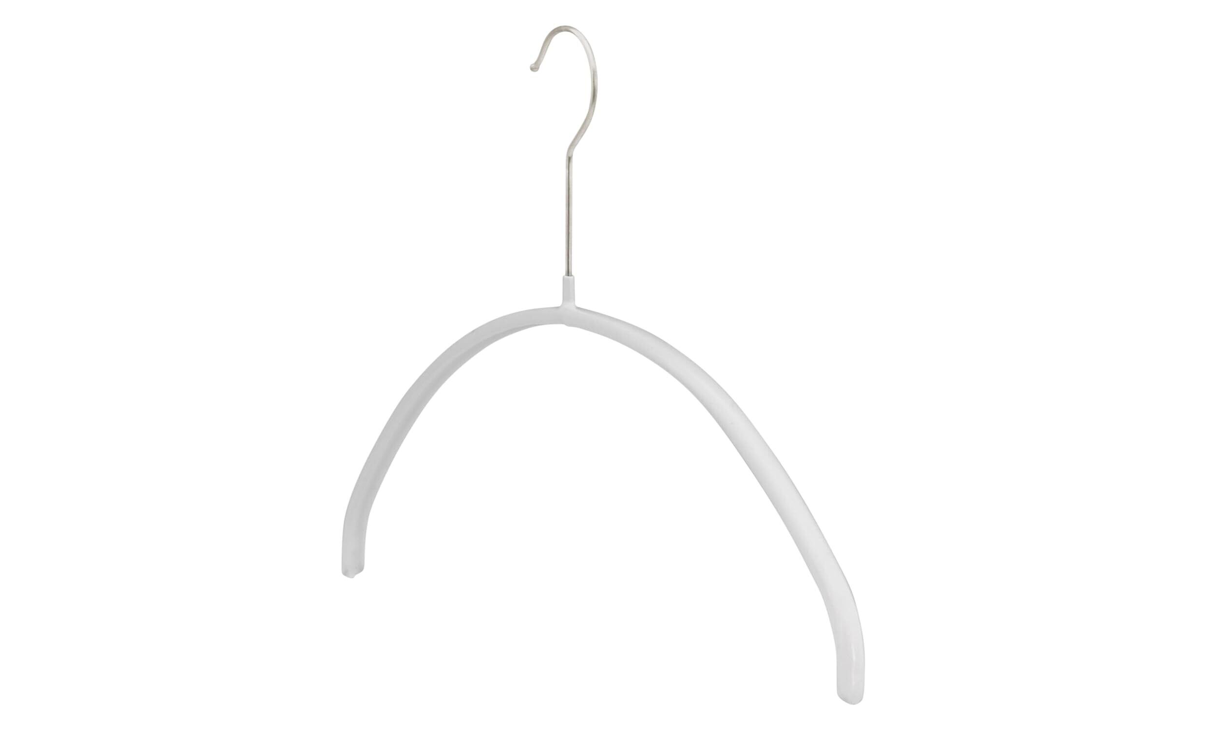 【すべらない】スチール製のハンガー本体はPVC樹脂で特殊コーティングが施され、掛けた衣類が滑り落ちません。人体のラインに合わせた立体構造のため、滑り落ちやすいカーディガンやニットも型崩れなく収納できます。