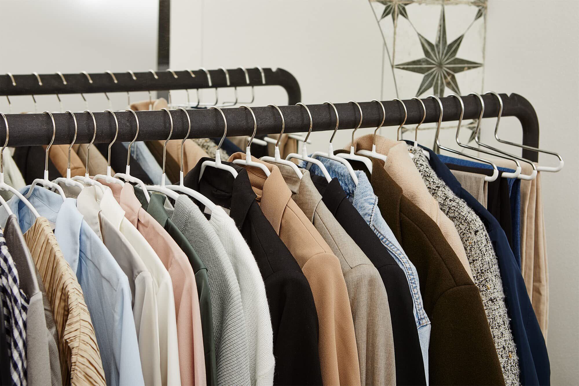 【収納力UP】厚さ1cmのスリムデザインなのでクローゼットやハンガーラックで幅を取らずにたくさんかけられ、省スペース。ハンガーを統一する事で肩のラインが並び、見た目も美しく、スッキリ収納。