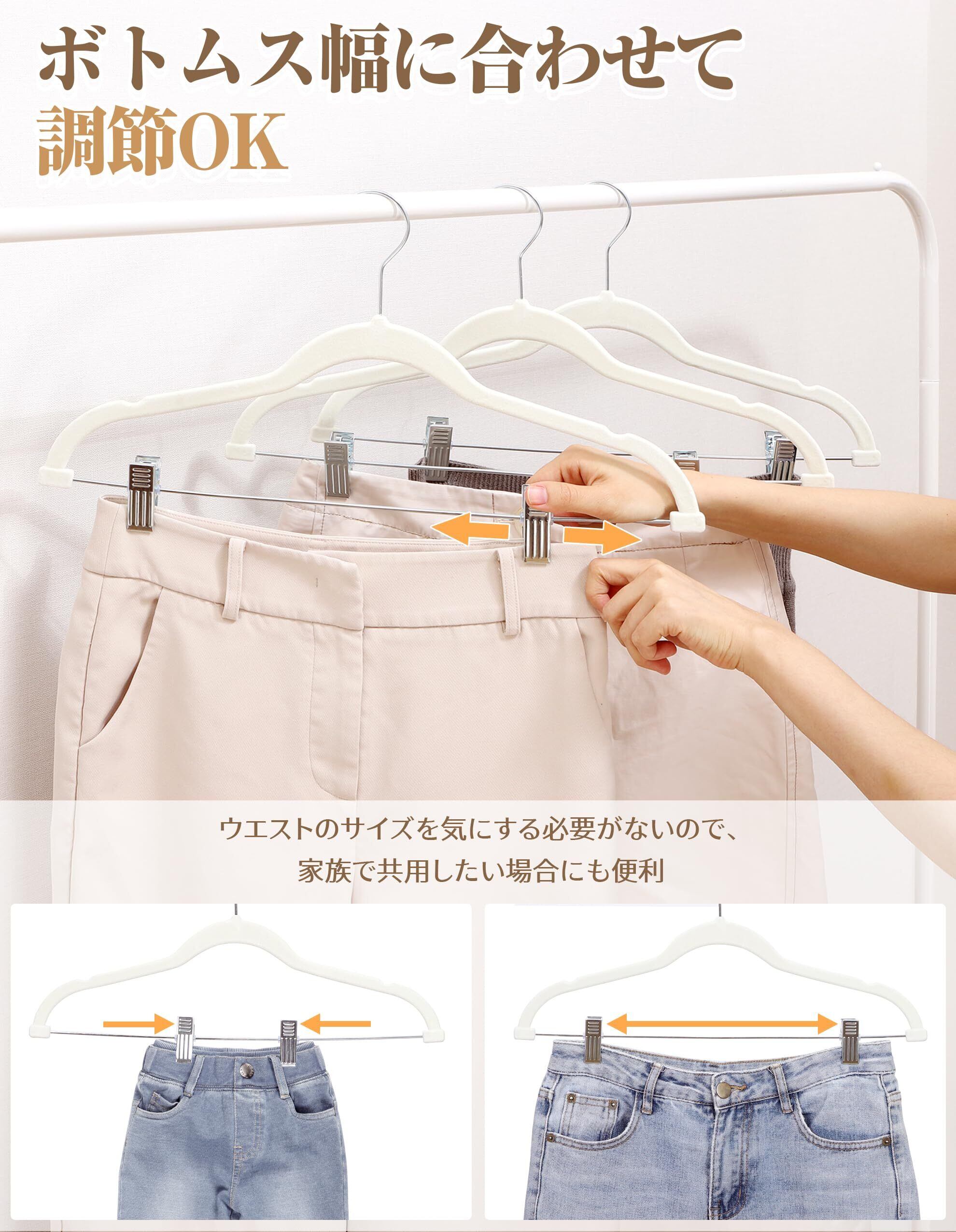 【ボトムス幅に合わせて調整可能】クリップは左右にスライドするので、子供用の服から大人用の服まで使用可能。