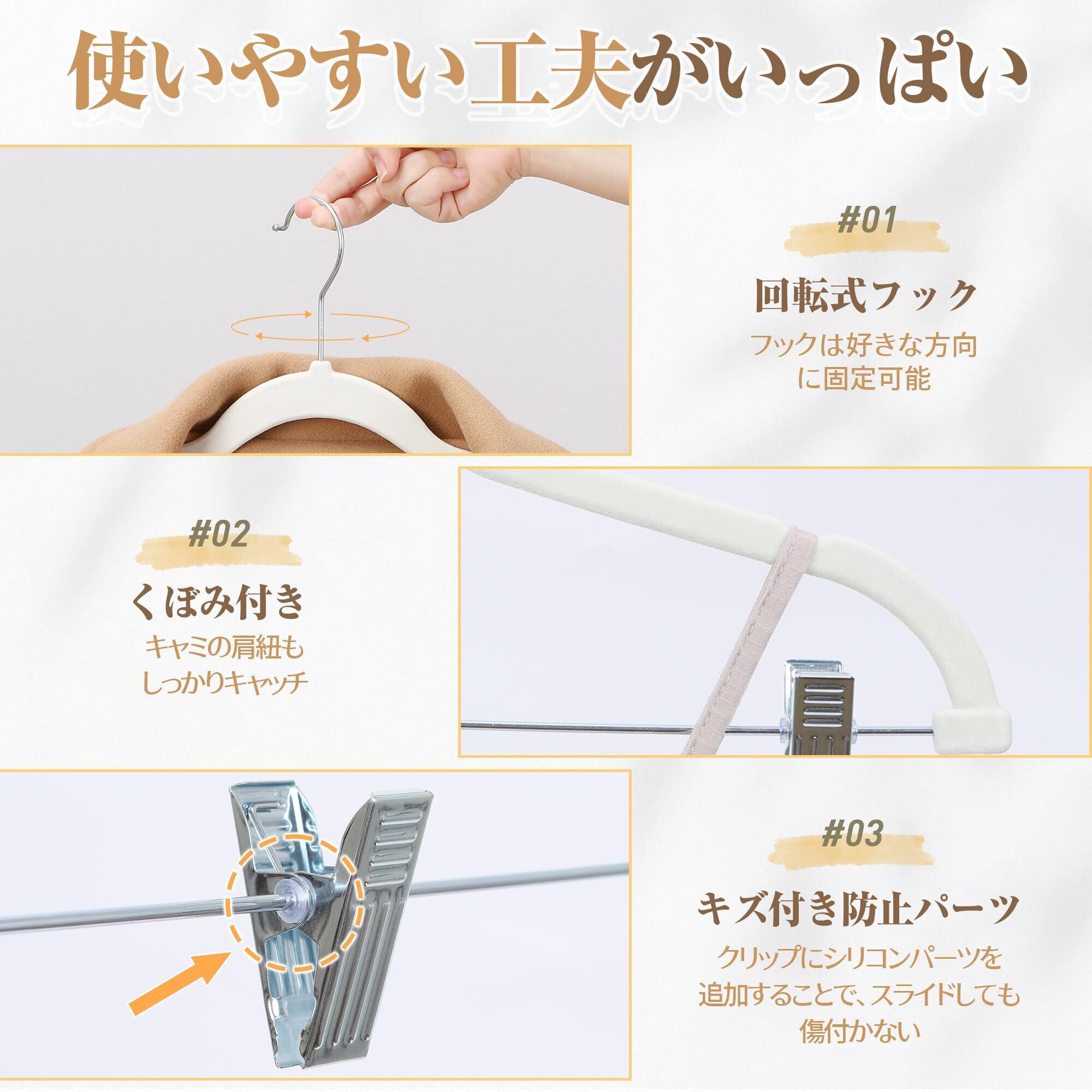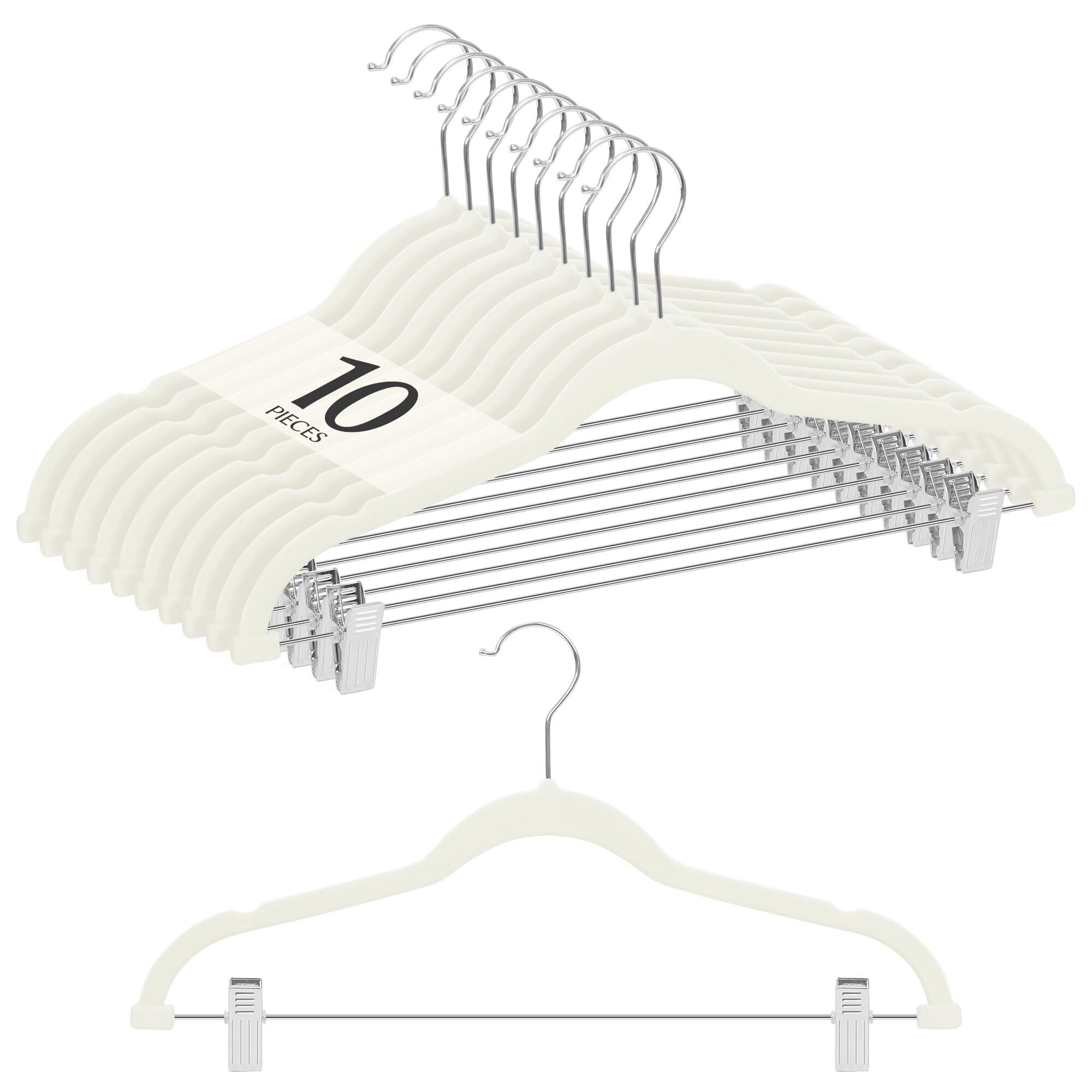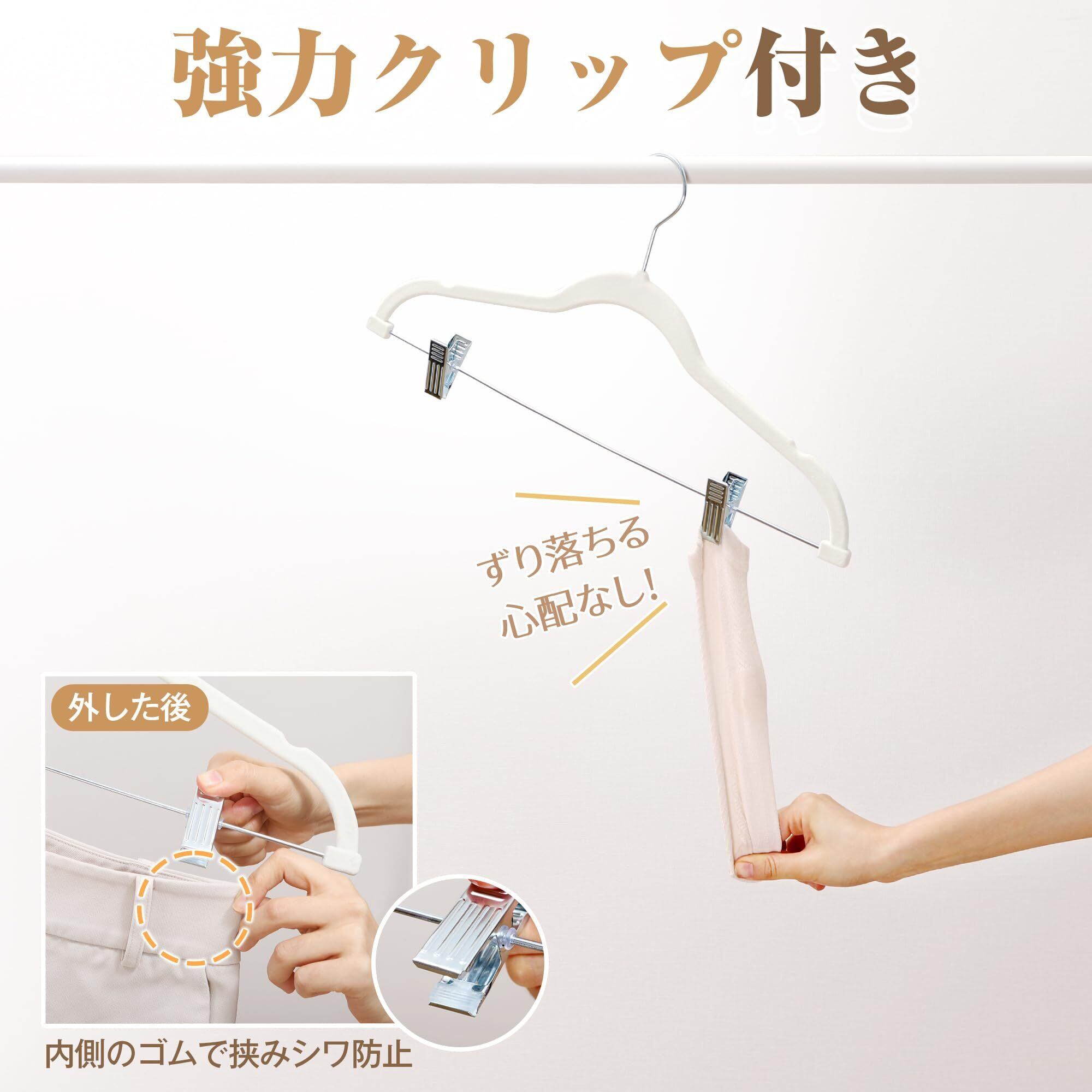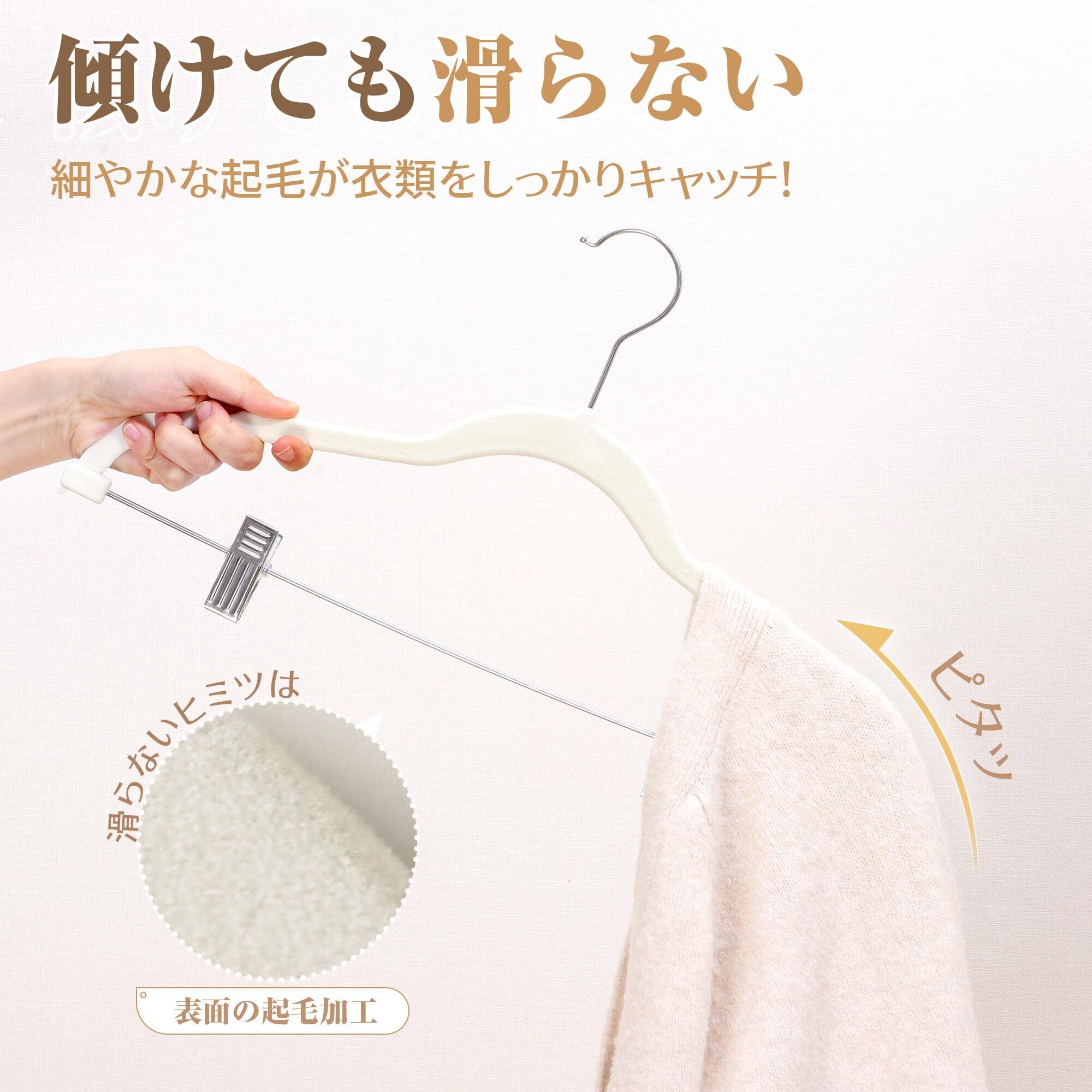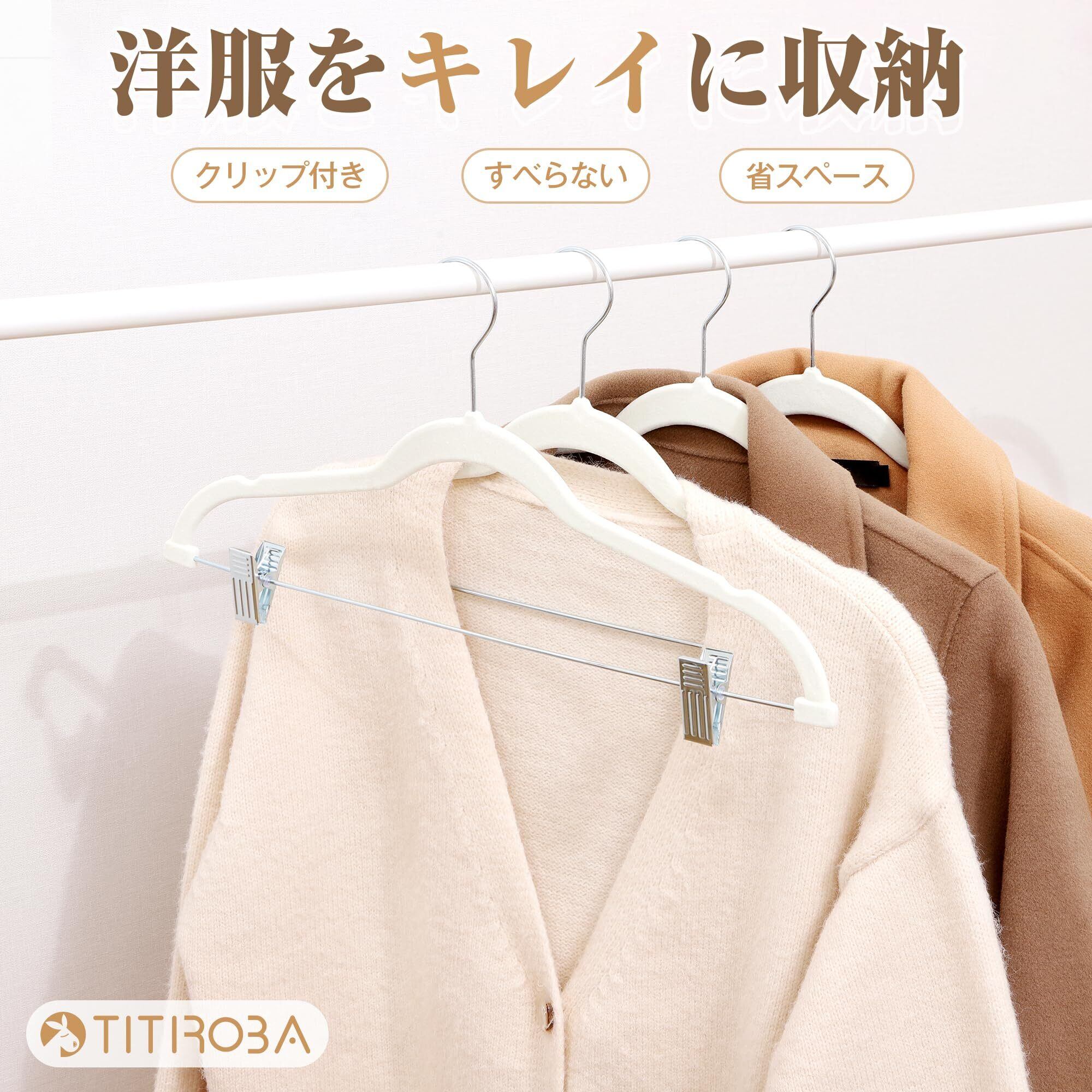 【 限定】 チチロバ(Titiroba) (TITIROBA) ハンガー すべらない かたくずれ防止 クリップ スリム 軽量 ベルベット製 10本組 アイボリー 23AB162