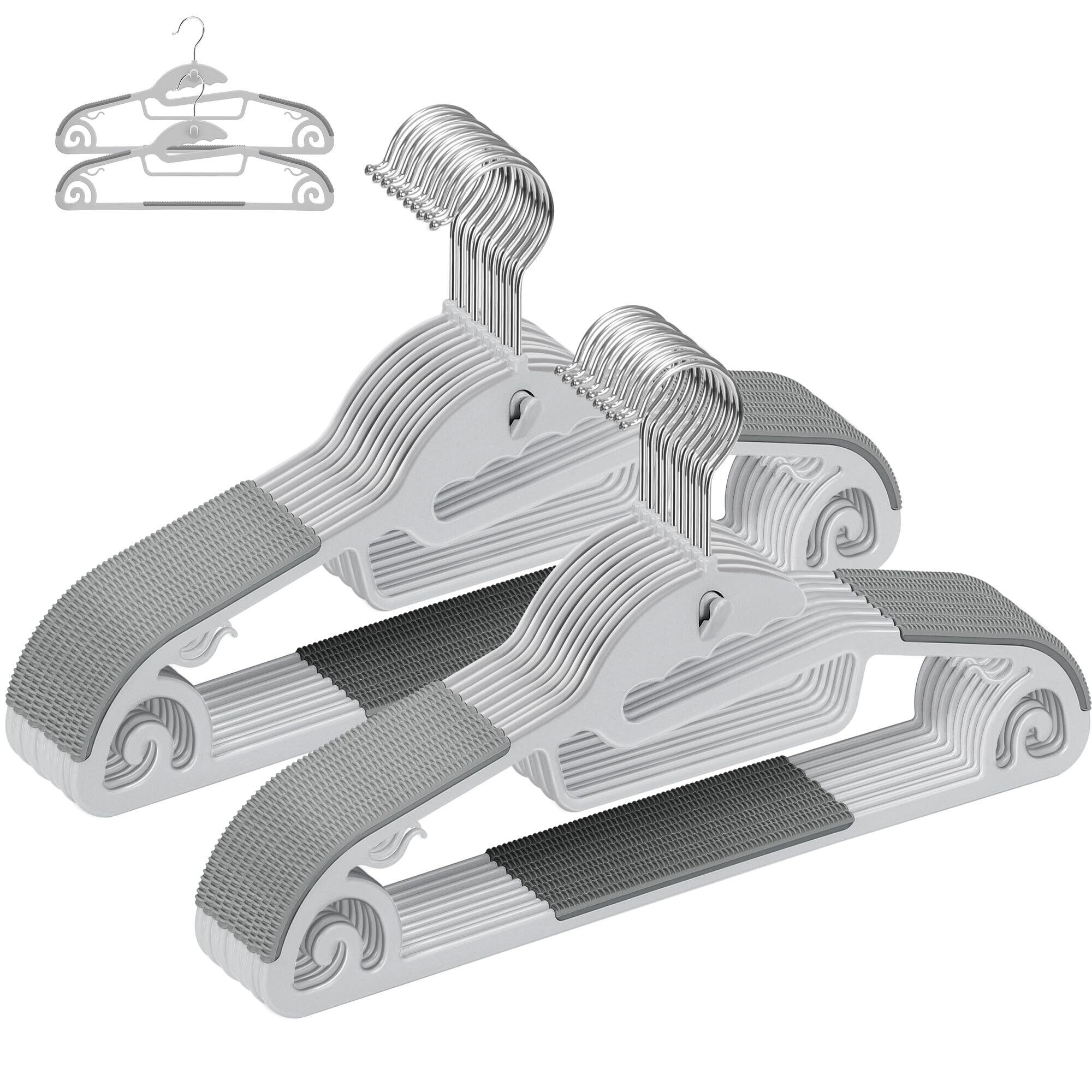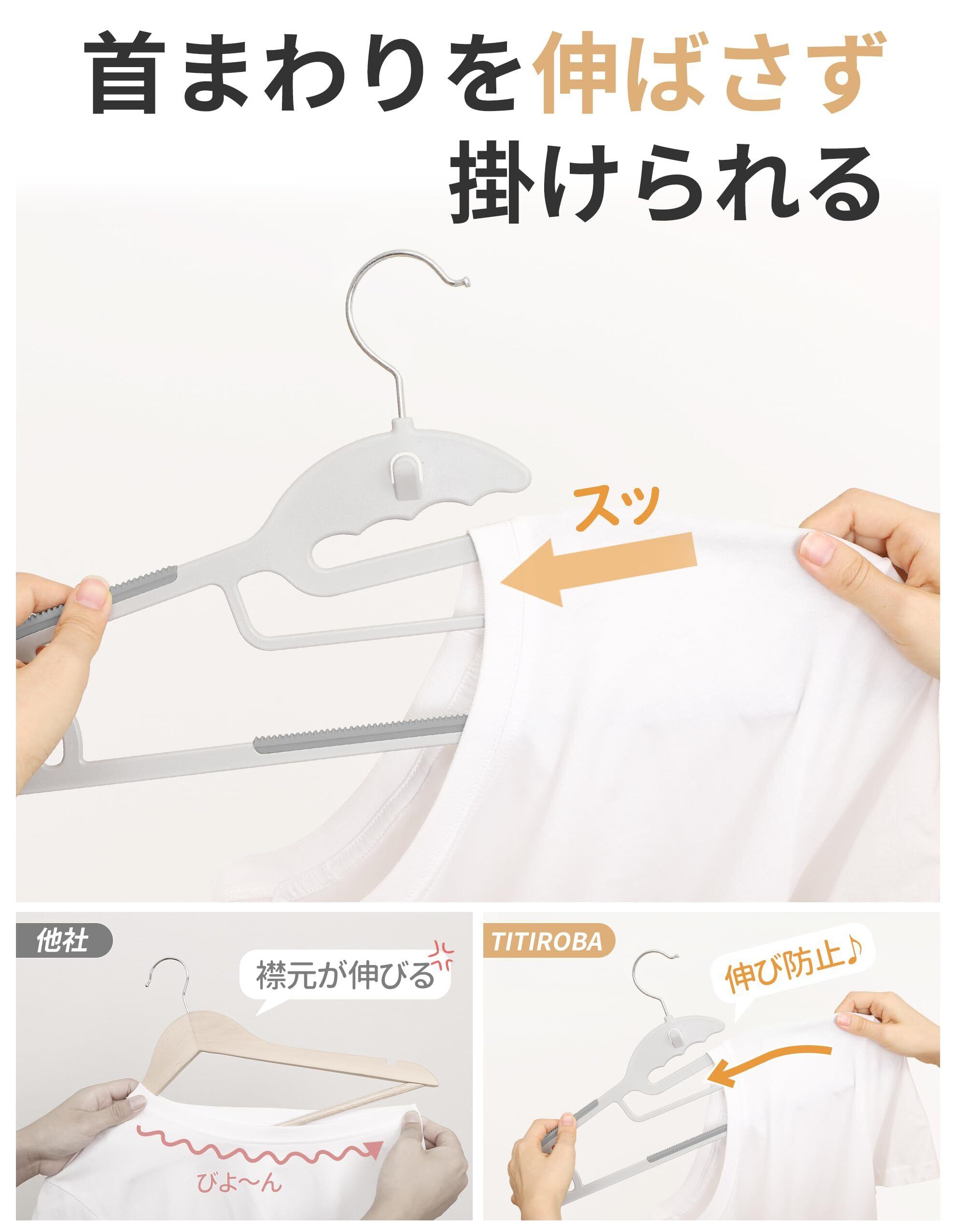 【襟ヨレ解決×サッと掛けるだけ】チチロバ(TITIROBA) ハンガー すべらない 襟が伸びない かたくずれ防止 伸び防止 連結フック付き 多機能 おしゃれ スリム 20本組 グレー