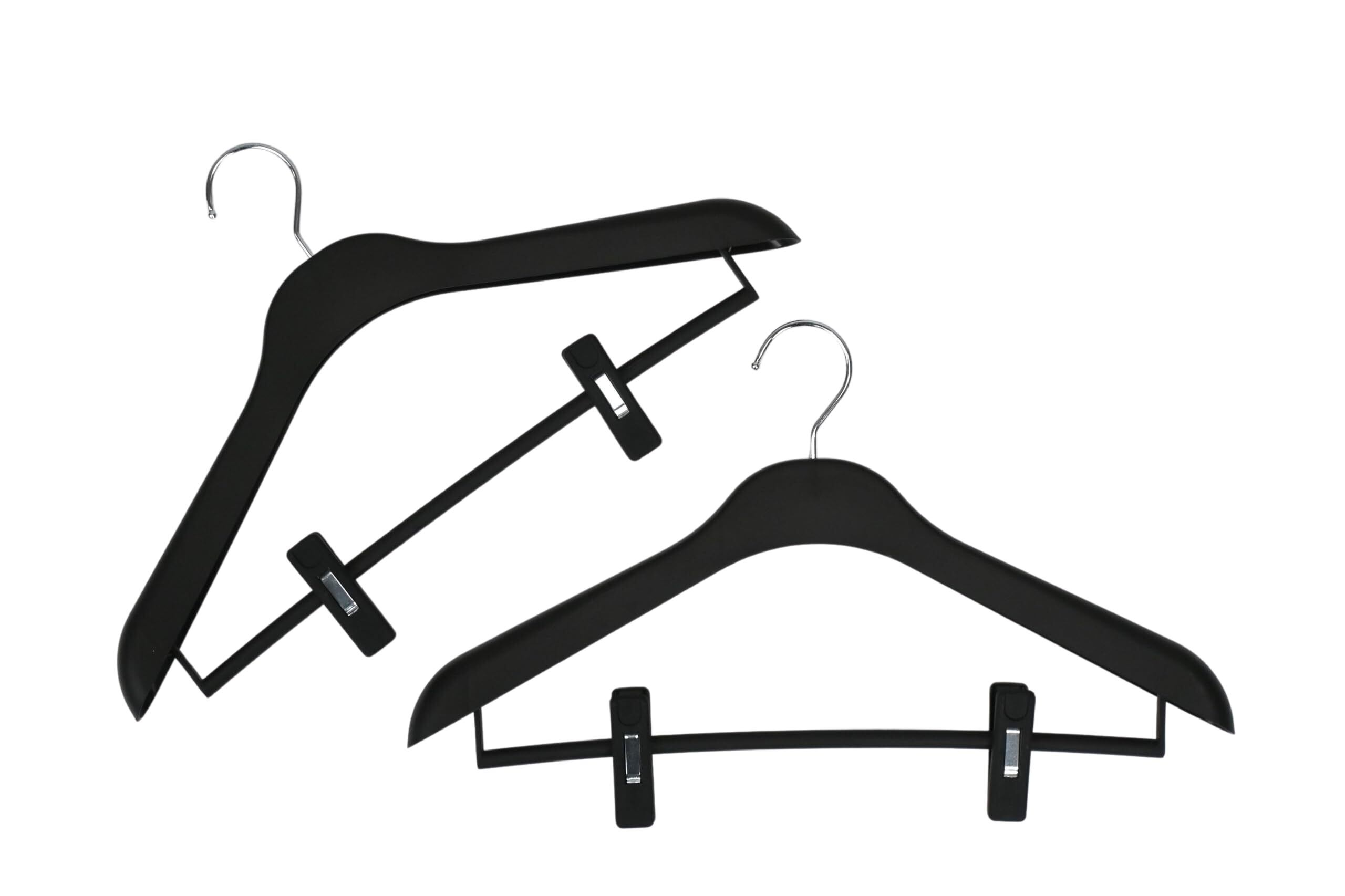 サワフジ 洋服ハンガー すっきり収納 フォーマルカペラB2P ブラック 幅420mm 2本組 収納 衣類 クリップ付 スカート パンツ ズボン プラスチック 型崩れ FCC-42-2P