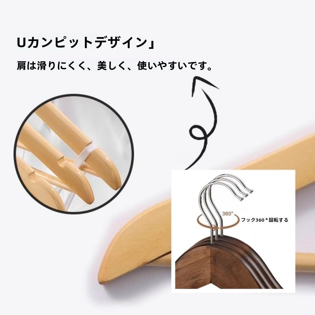 【ハンガー 耐久性素晴らしい】木製ハンガー 無垢材製造のハンガー 木目は丈夫で長持ちします。ハンガー 木製 フック部360度可動ので、木製ハンガー 収納の幅が広がります。丈夫な横棒に、スカート、ズボン、マフラーなどを掛けます。