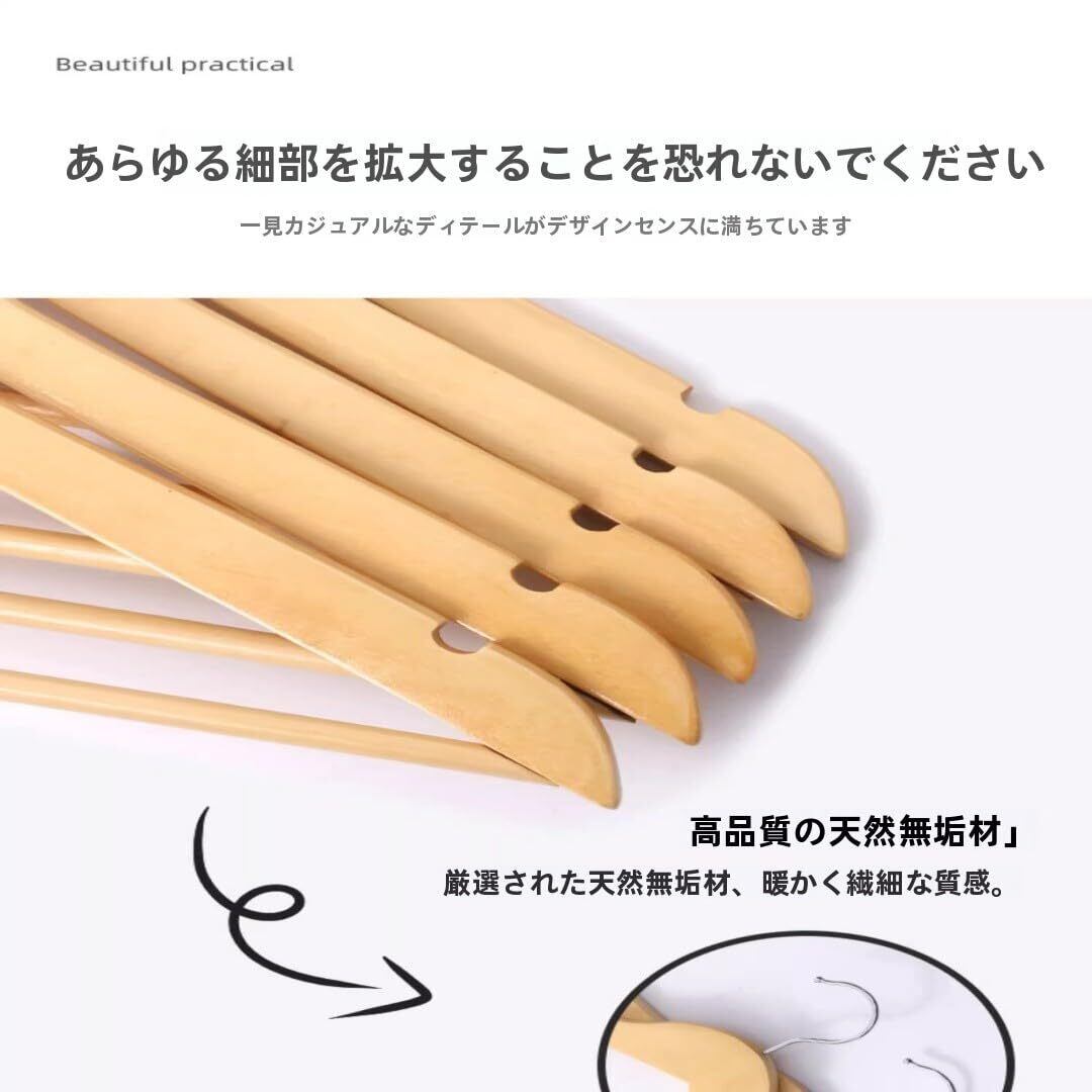 【天然木製コートハンガー】ハンガー 良質な木材を使用し、頑丈で耐久性も抜群です。衣架 環境にやさしい耐摩耗性ワニスによる塗装、絶妙な木目調の衣類ハンガー、優しい木の色で部屋に馴染みやすいです。