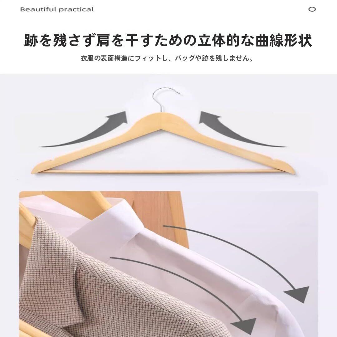 【ハンガー 合理的な省スペース設計】薄型で収納効率も良いハンガーです、衣類が型崩れしにくい、木製ハンガー 手で磨かれた滑らかな表面。ハンガー 木製 男性と女性の服に全部適用でき、シャツ、ワンピース、セーターやコート、ジャケットなどにお使い頂けます。