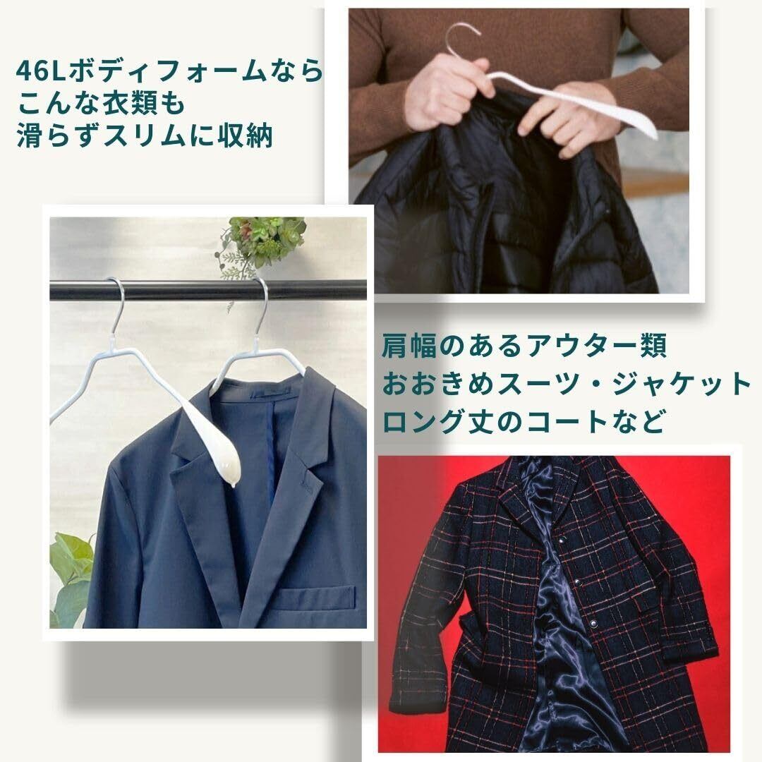 【型崩れしない】厚みのある肩先でジャケットやコートの肩のラインを保ち、背中の形に合わせた立体フォルムで型崩れなく収納できます。