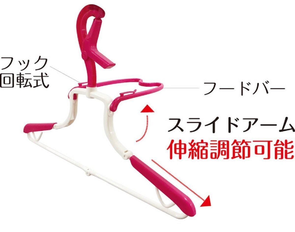 首もとを無理に伸ばさず干せて衣類のサイズに合わせてアームを伸縮調節できるので、