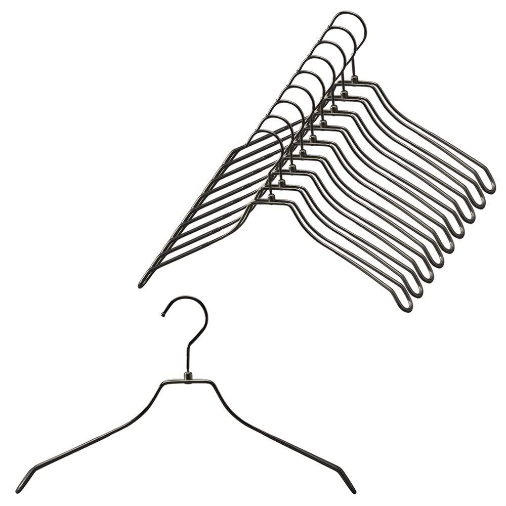 TAMATOSHI ダブルスチールハンガー 幅38cm ブラックニッケルメッキ 滑り止め付 10本組 5年 店舗什器メーカー開発 スリム 高級 自宅 店舗 洗濯 薄い あとがつかない 頑丈 収納 錆びにくい 曲がらない