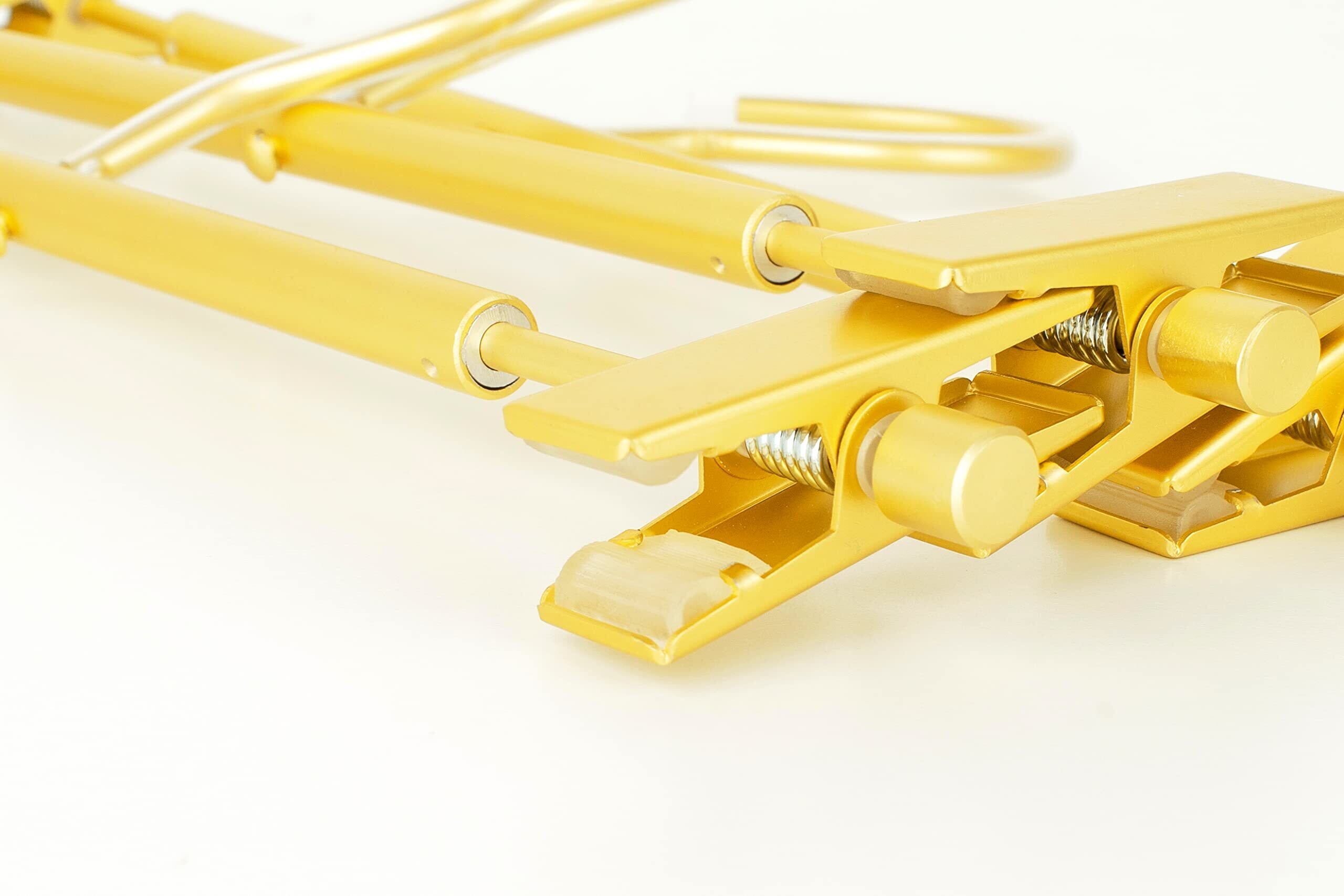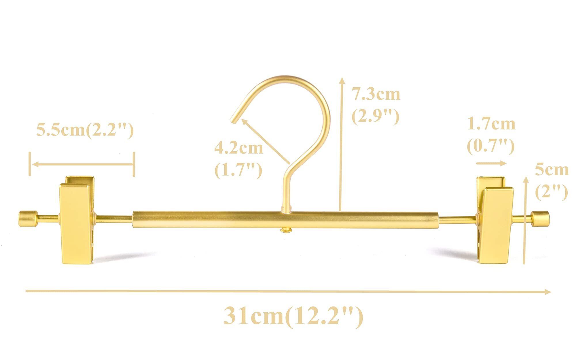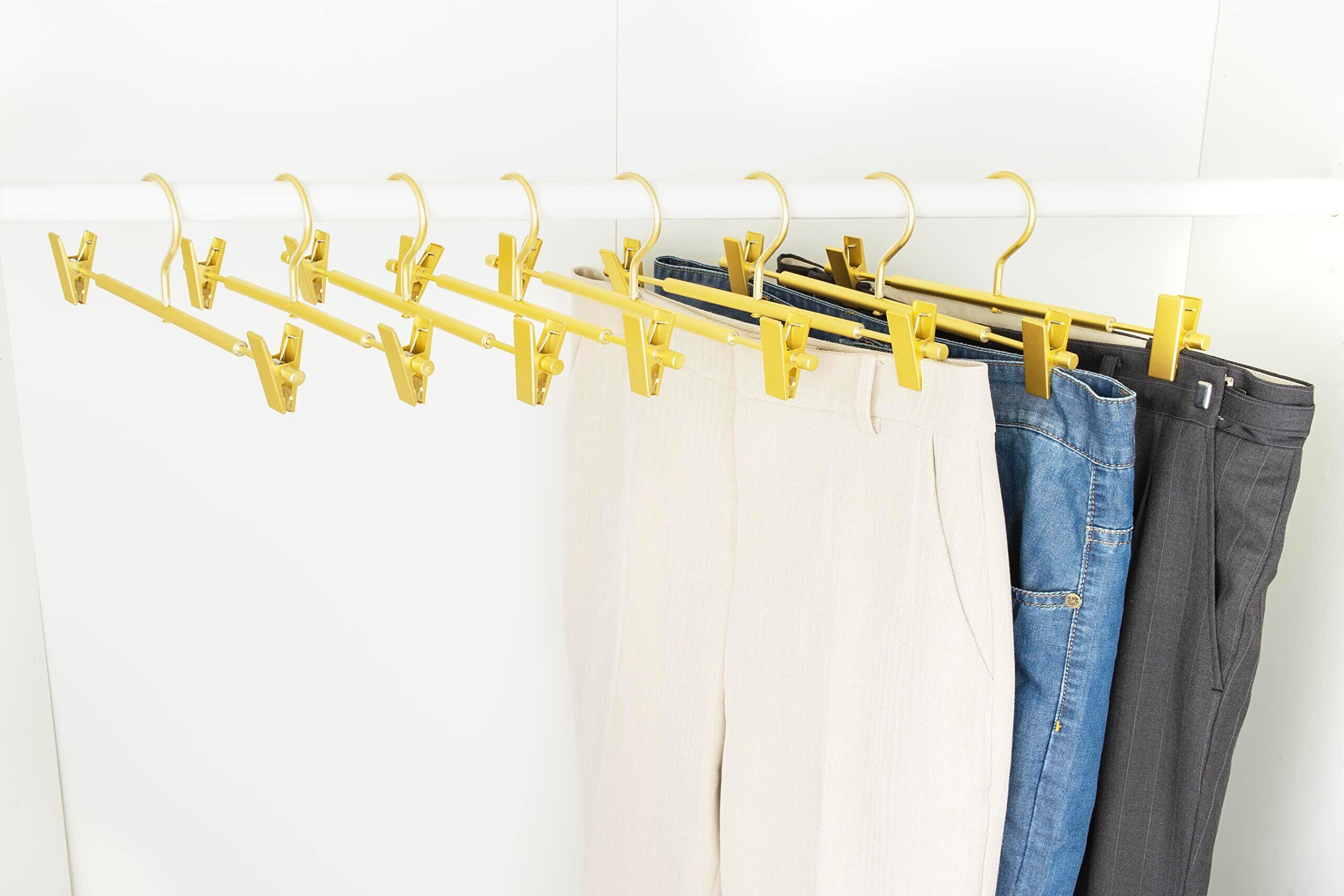 Amber Home 超軽いゴールドズボンハンガー 10本組 スカートハンガー ボトムス パンツ スラックス タオル用 金属 メタル 耐用性 調節可能クリップ コンパクト 滑り止め マットゴールド 幅30cm