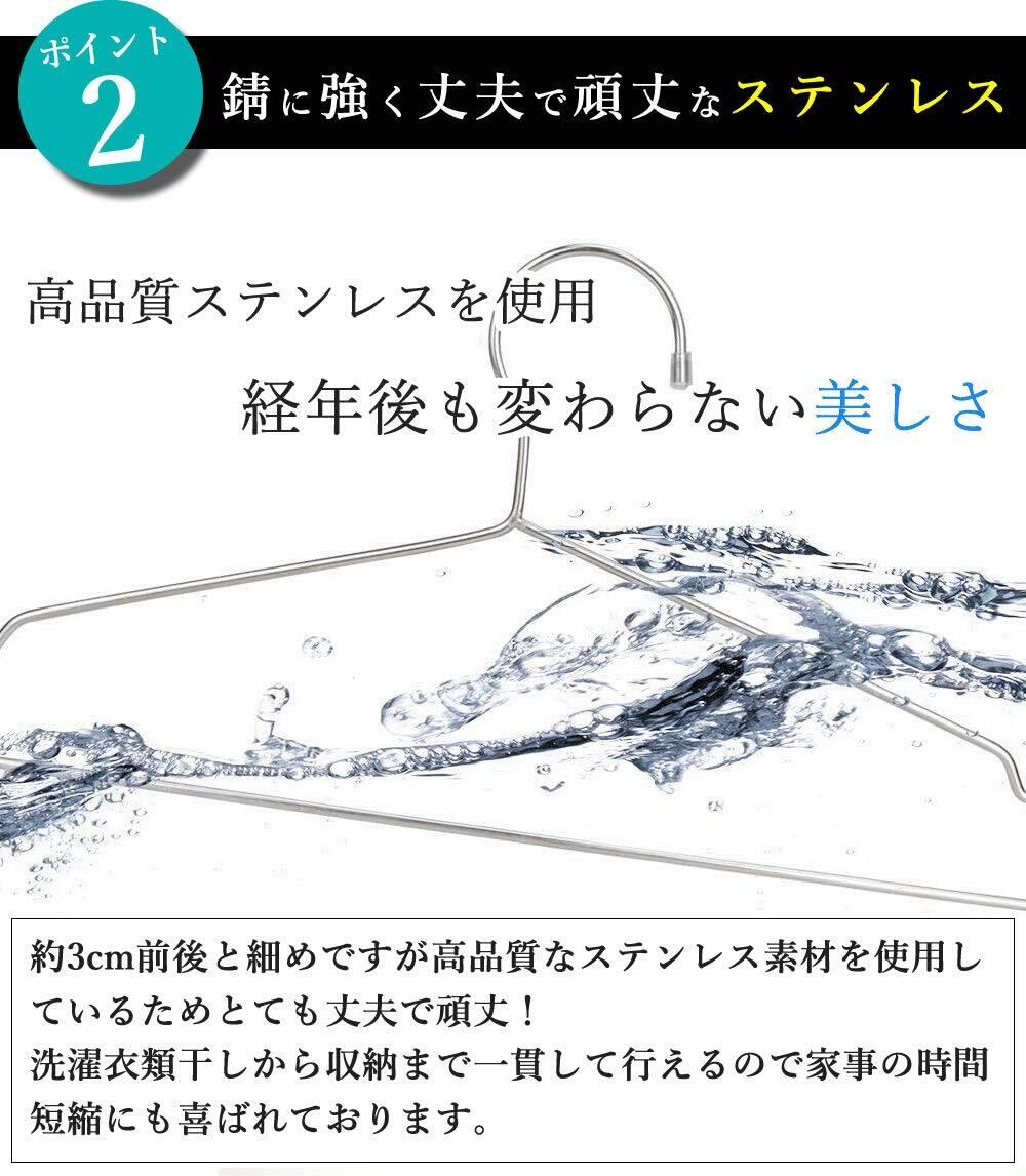 KUENTAI ステンレスハンガー 50本セット 50cm すべらない 錆びない 頑丈 丈夫 洗濯 収納 大きめ コートハンガー 曲がりにくい