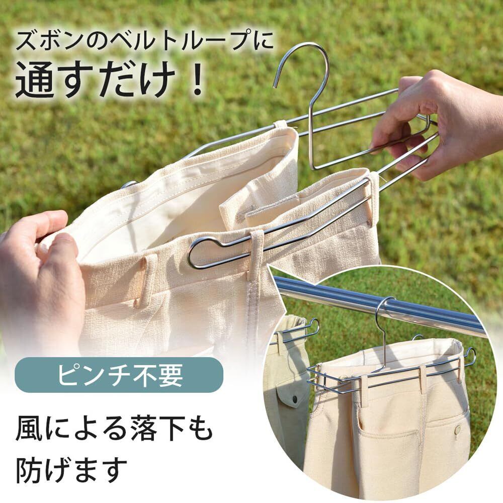 下村企販 乾きやすい ズボンハンガー 【日本製】 中が開いた状態で干せる 跡がつかない 丈夫 スラックス パンツ 部屋干し 外干し ステンレス 洗濯物干し 燕三条 44941