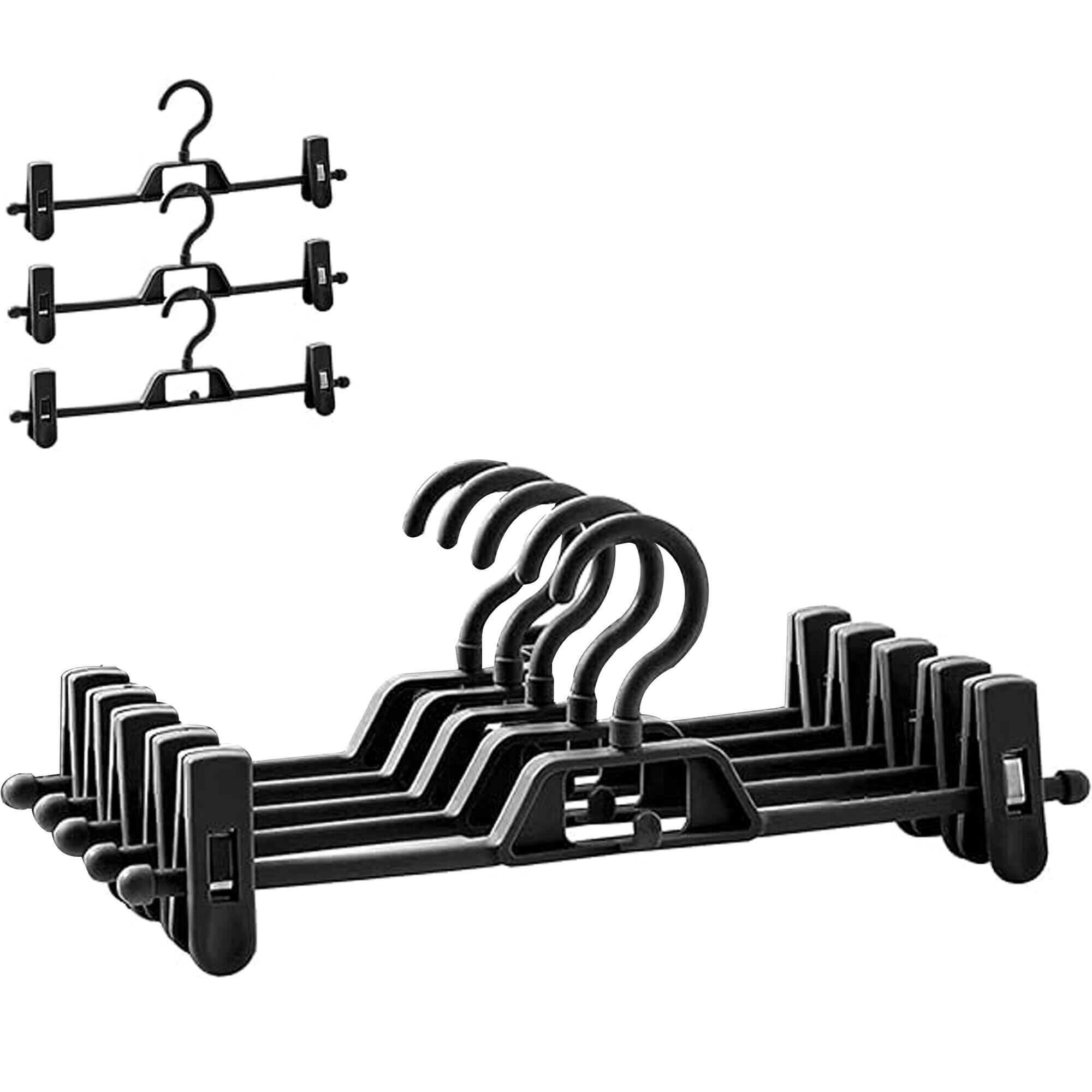 HOSUR ズボンハンガー スカートハンガー パンツハンガー クリップハンガー 8本組 すべらない 360度回転フック 洗濯 シワ防止 連結フック付 サイズ調整可 ブラック