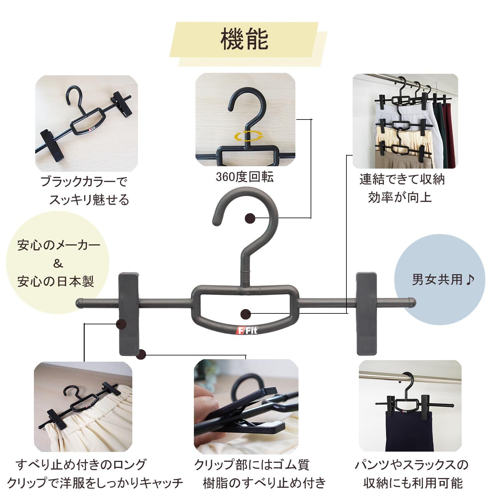 ベーシック クリップハンガー10本セット【シンコハンガー公式】F-Fitクリップバー10本セット|スカート ズボン ボトム ピンチハンガー クリップハンガー すべらない スリム スラックス ブラック 収納 衣類 洋服 洗濯 スーツ すべり止め すべりどめ クローゼット 押入れ 物干し
