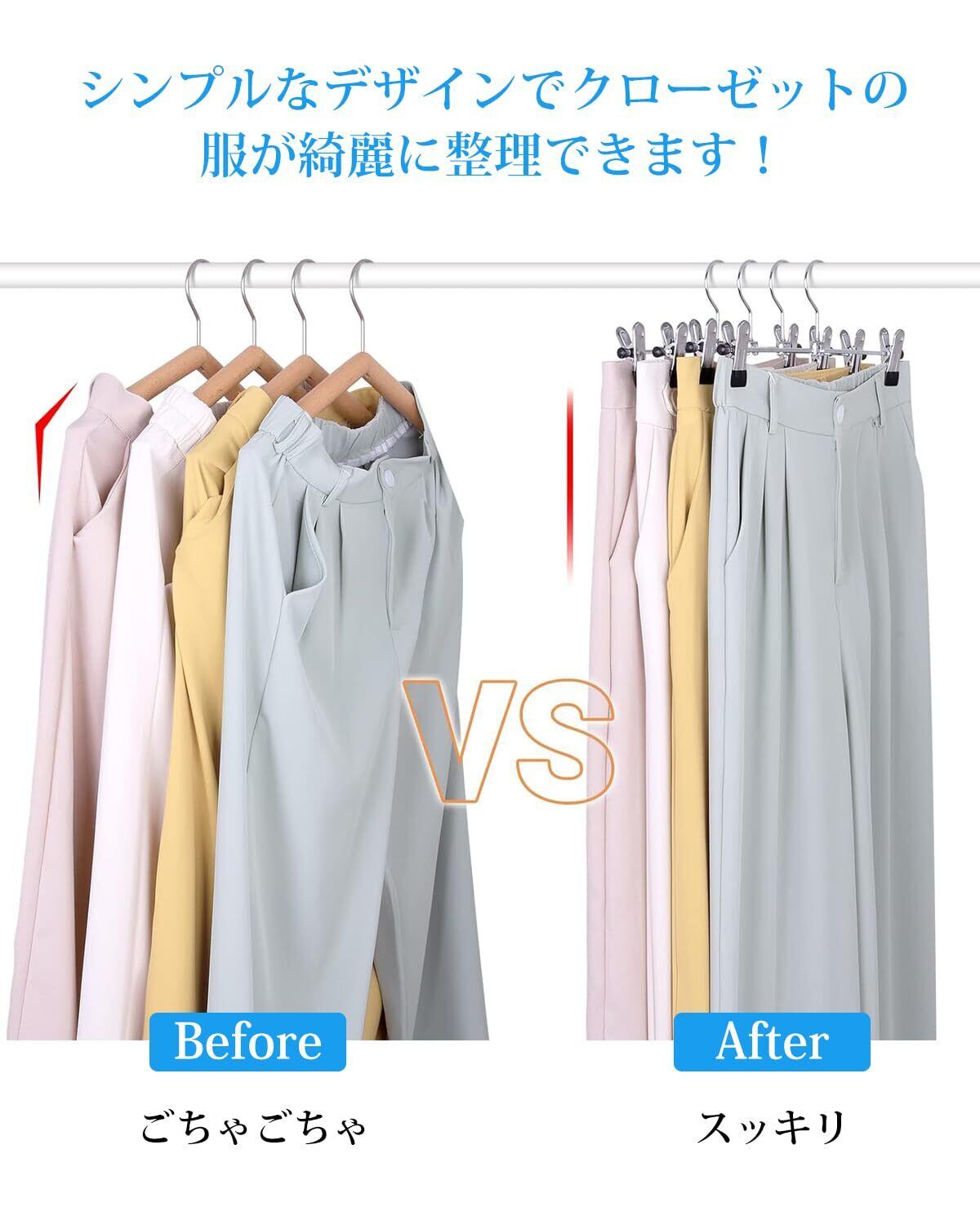 【可動式クリップで位置調整可能】クリップ部分の間隔が左右に5cmから20cmまで移動可能です。衣類のサイズに合わせて位置を調整できるので、子供から大人まで様々な衣類をかけられます。【ショップサービス】 本製品は長期使用が可能です。万が一商品に不具合がある場合は、お気軽にご連絡ください。できるだけ早く解決いたします。