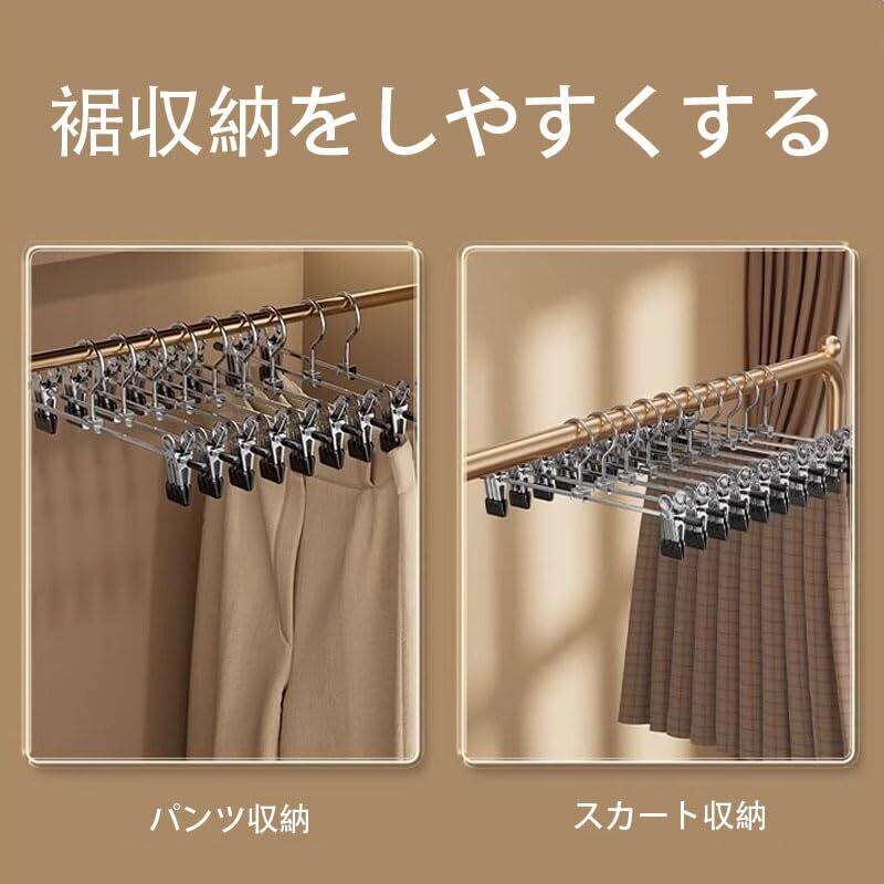 【丈夫なパンツスタンド】繊細なシルクからジーンズまで、調節可能なクリップでしっかりと服を挟み、シワを防ぎます。優れたデザインと頑丈な容量で、ズボンやスカートを掛けやすくします。