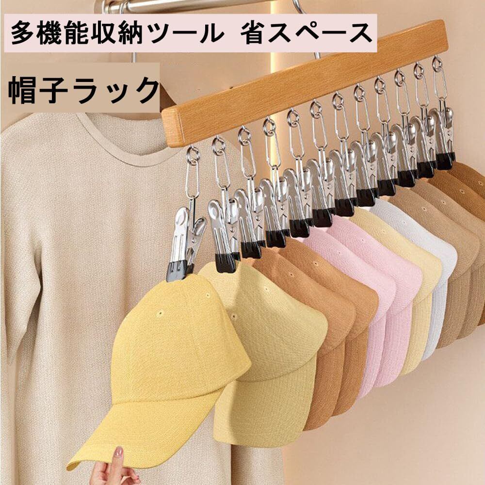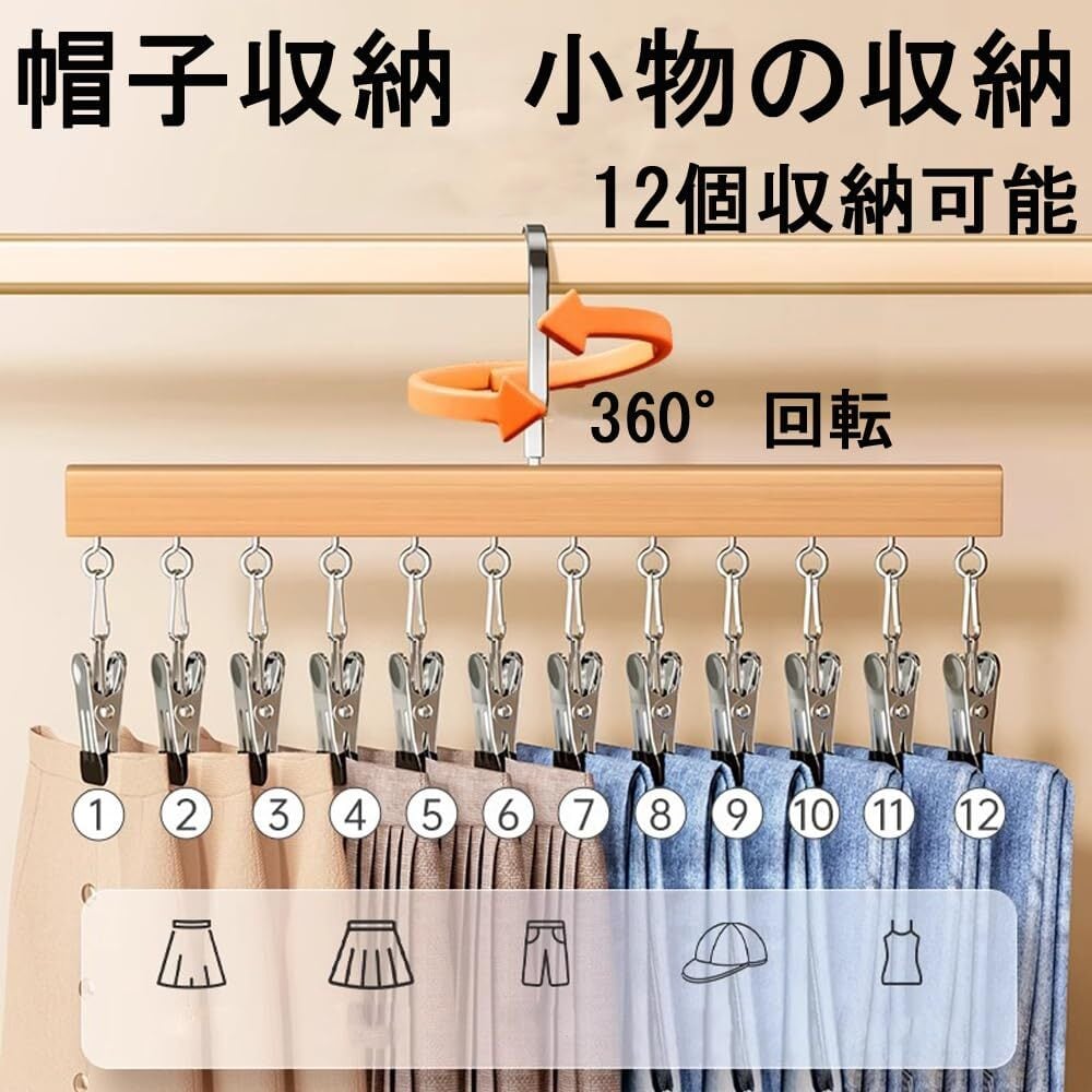 帽子掛け ハンガー 帽子 収納 360°回転フック クリップ キャップ スタンド 吊り下げ スペース節約 多機能小物ハンガー 収納力アップ キャップハンガー 型崩れ防止 クリップ12個付き