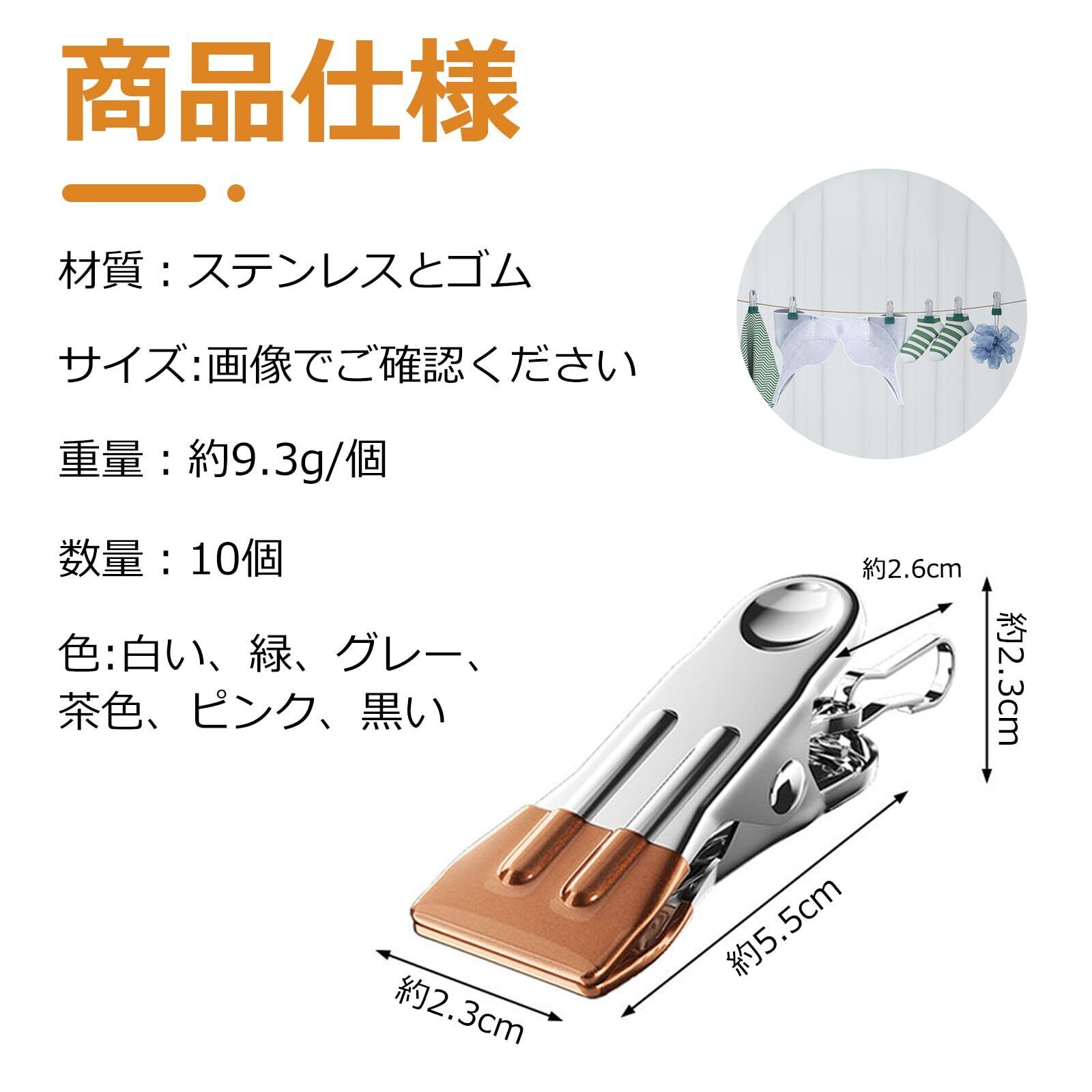 Anboli 洗濯ばさみ 洗濯ピンチ 洗濯バサミ ラバー付き ステンレス モノクリップ 滑り止め 強力 10個入 接続バックル付 ステンレス製クリップ 洗濯用品 物干し 部屋干し 室外干し 多用途(グレー)