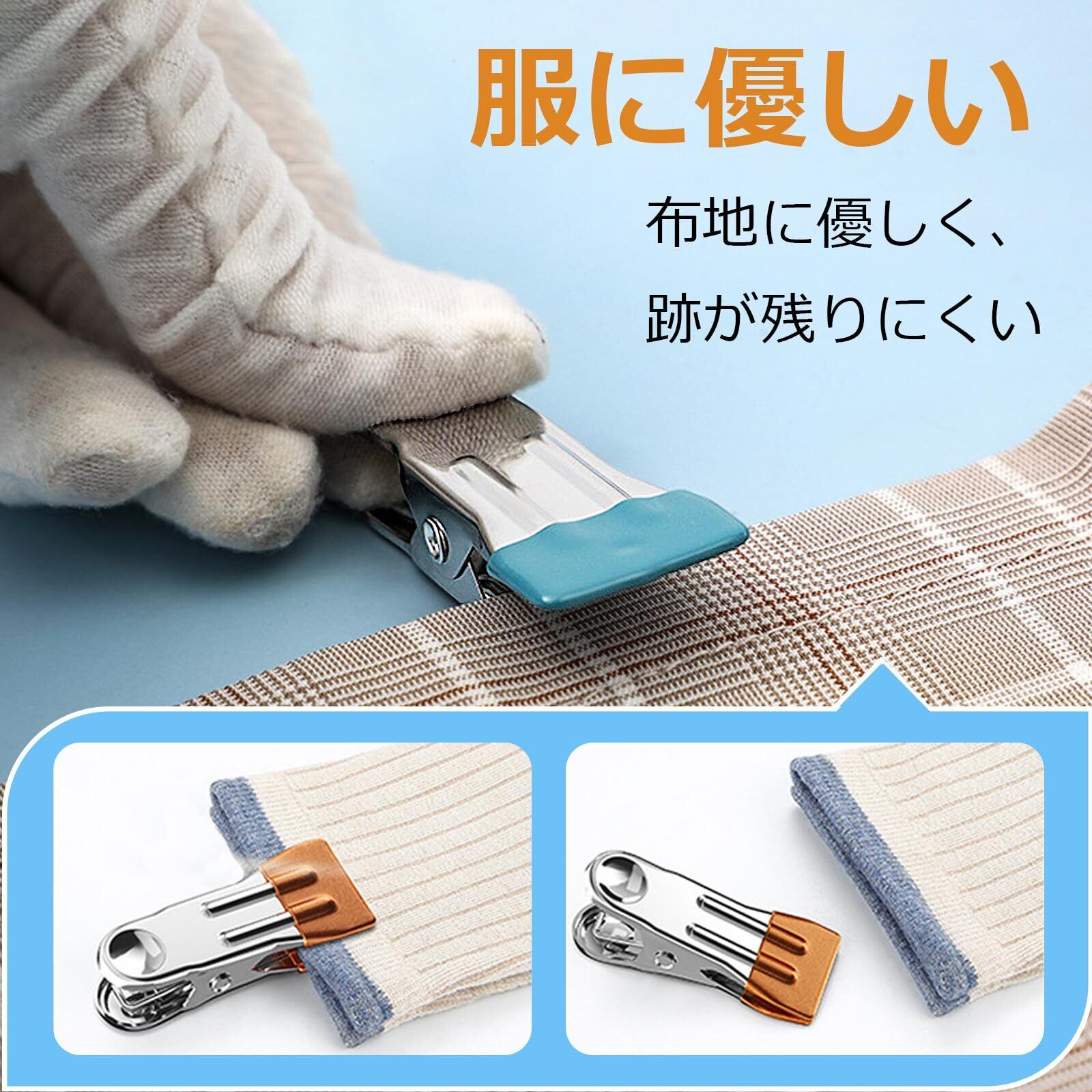 【滑り防止と跡が残りにくい】頑丈なクリップは、衣類をしっかりと固定できます。強力なクリップ力に加えて、ゴムの抵抗も滑りを防ぎます。先端にはゴムが付いており、従来の金属製クリップと比べて衣類に接触する面を可能な限り平らにし、布地に優しく、跡が残りにくくなっています。