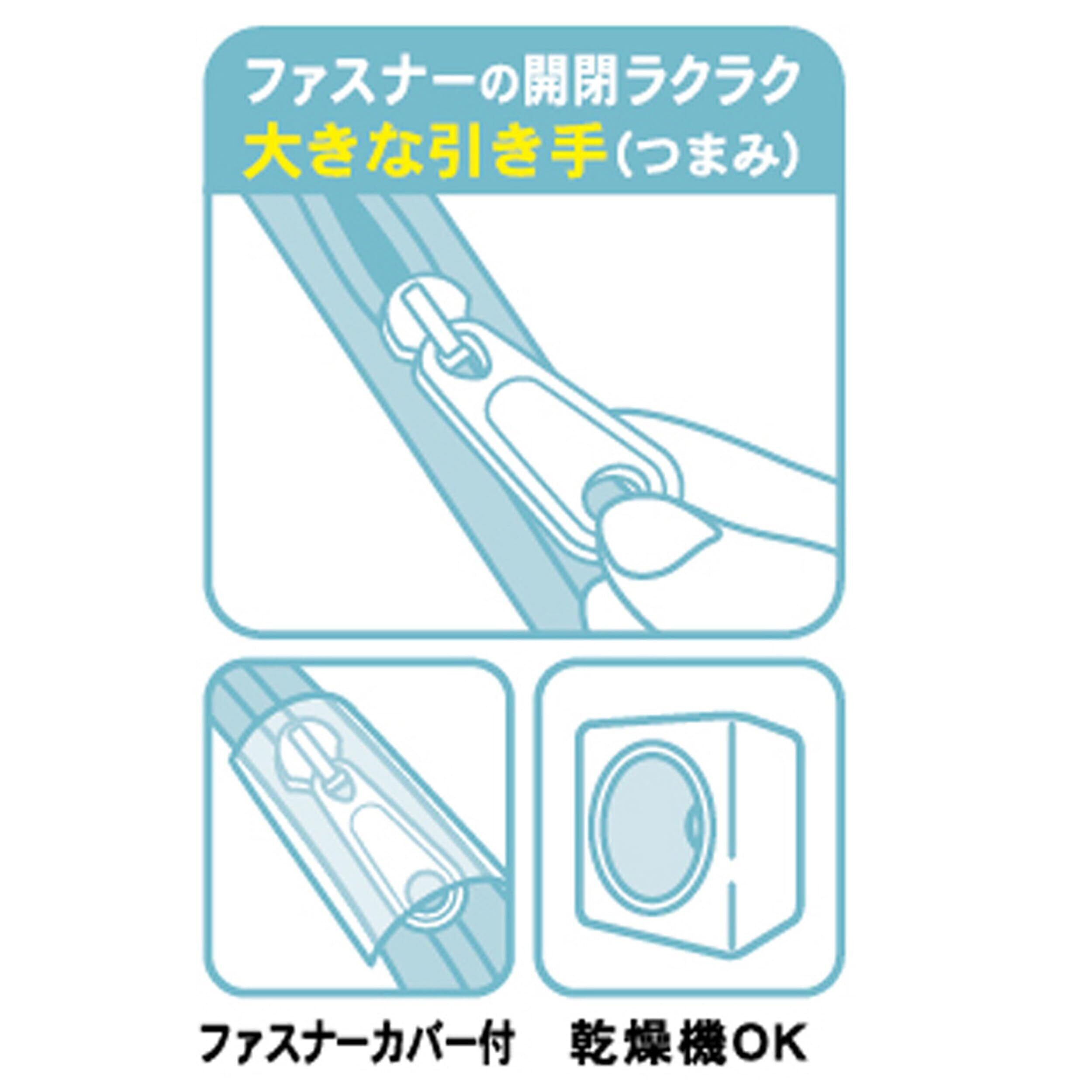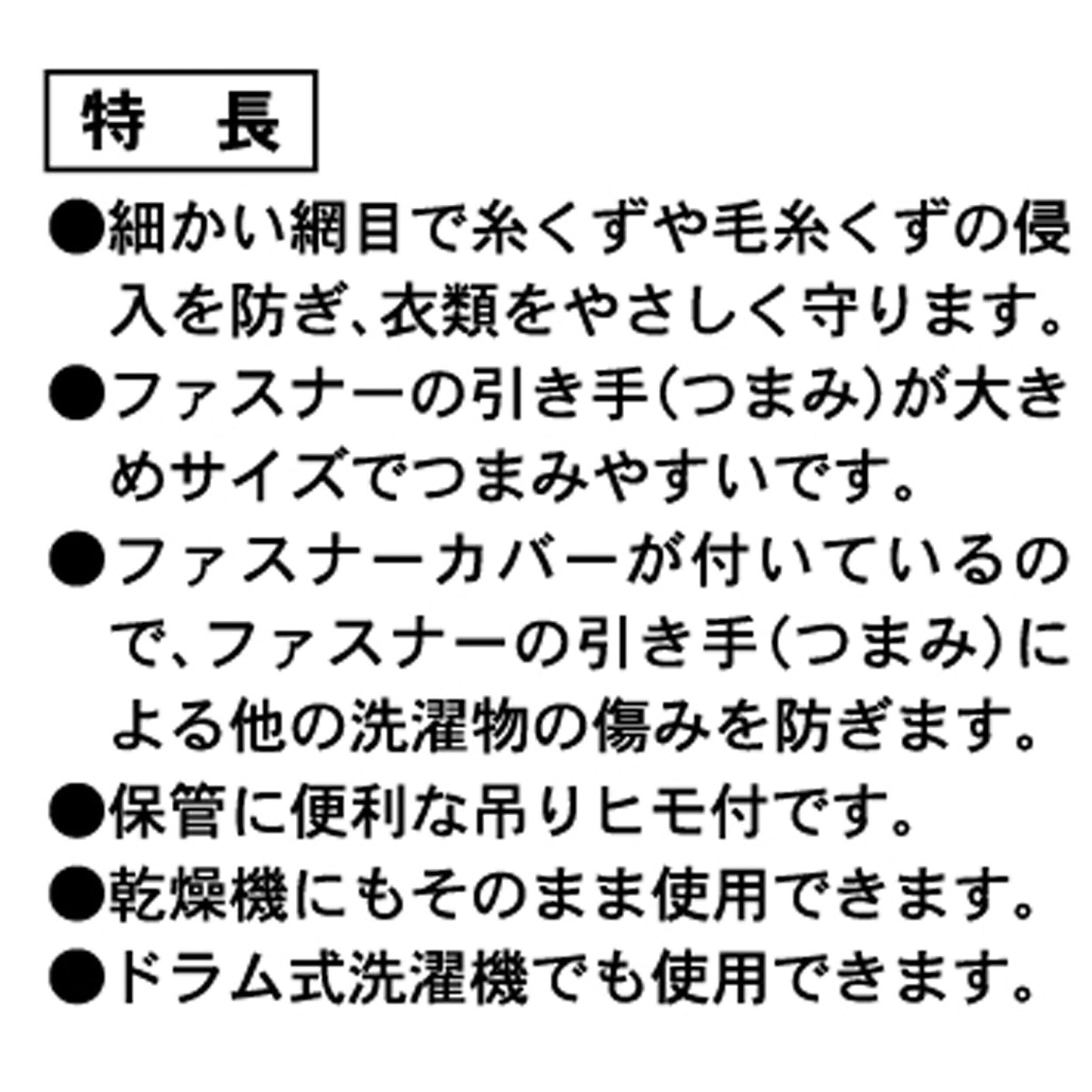 ●ファスナーカバーが付いているので、ファスナーの引手(つまみ)による他の洗濯物の傷みを防ぎます