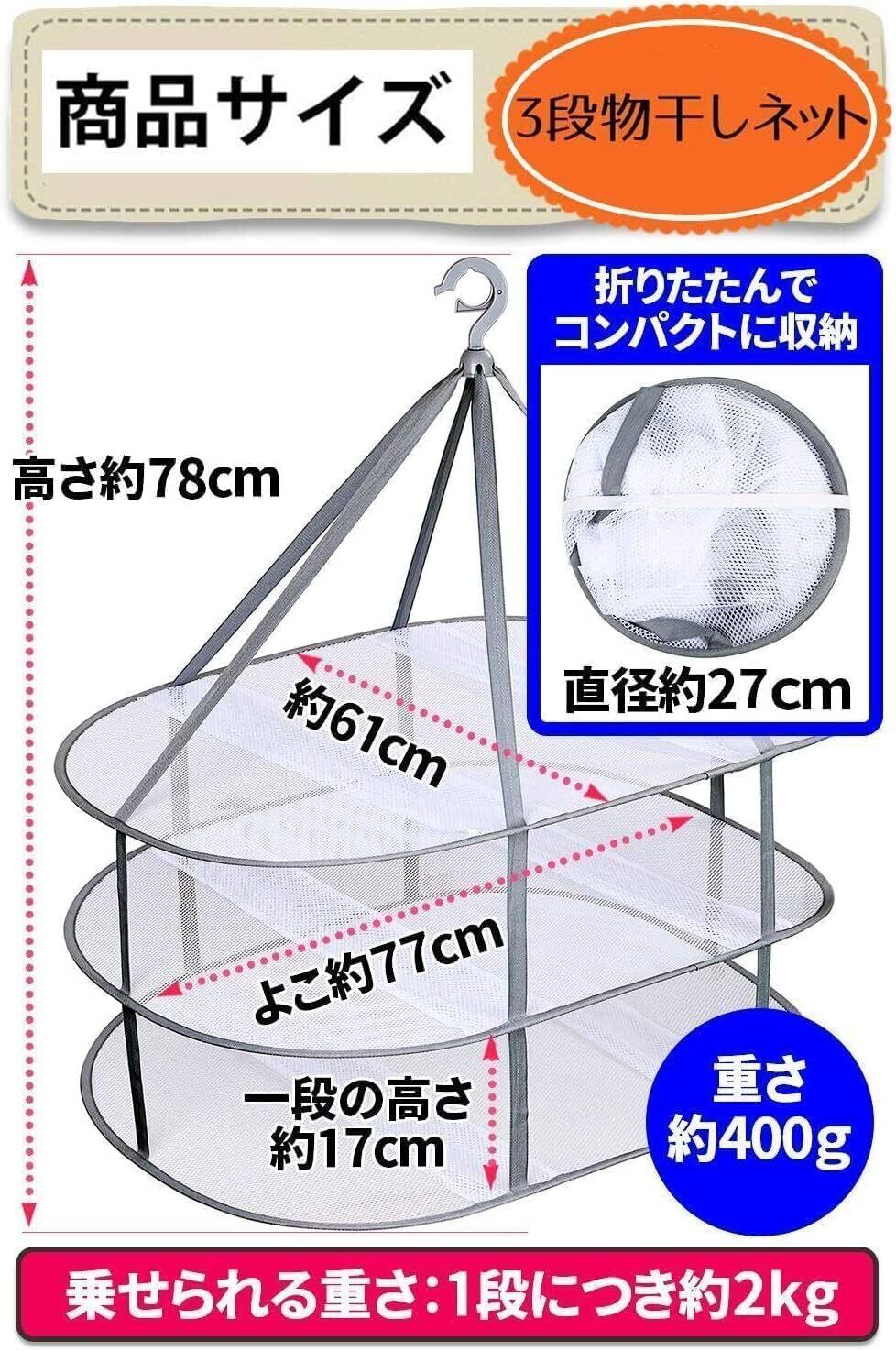 Athvcht 物干しネット 3段構造 折りたたみ収納 平干しネット 衣類変形防止 ニット干し 通気 室内 屋外 平置きネット大容量 防風 通気 型崩れしにくい 洗濯物 干し コンパクト ニット セーター ぬいぐるみ 枕 セーター ぬいぐるみ 枕 干しネット (物干しラック)