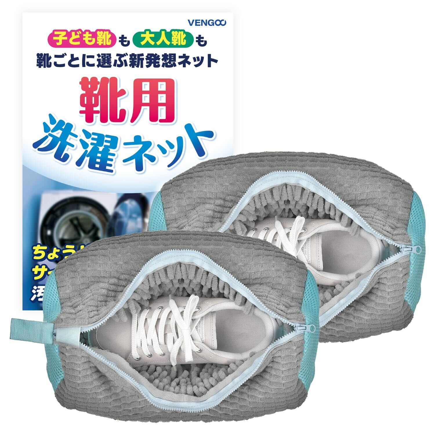 靴 洗濯ネット 靴用洗濯ネット 靴洗いネット ズックリーンネット 【洗濯検証済/他サイズあり】 片足用 複数洗い可 スニーカー 上履き VENGOO Mサイズ 2個