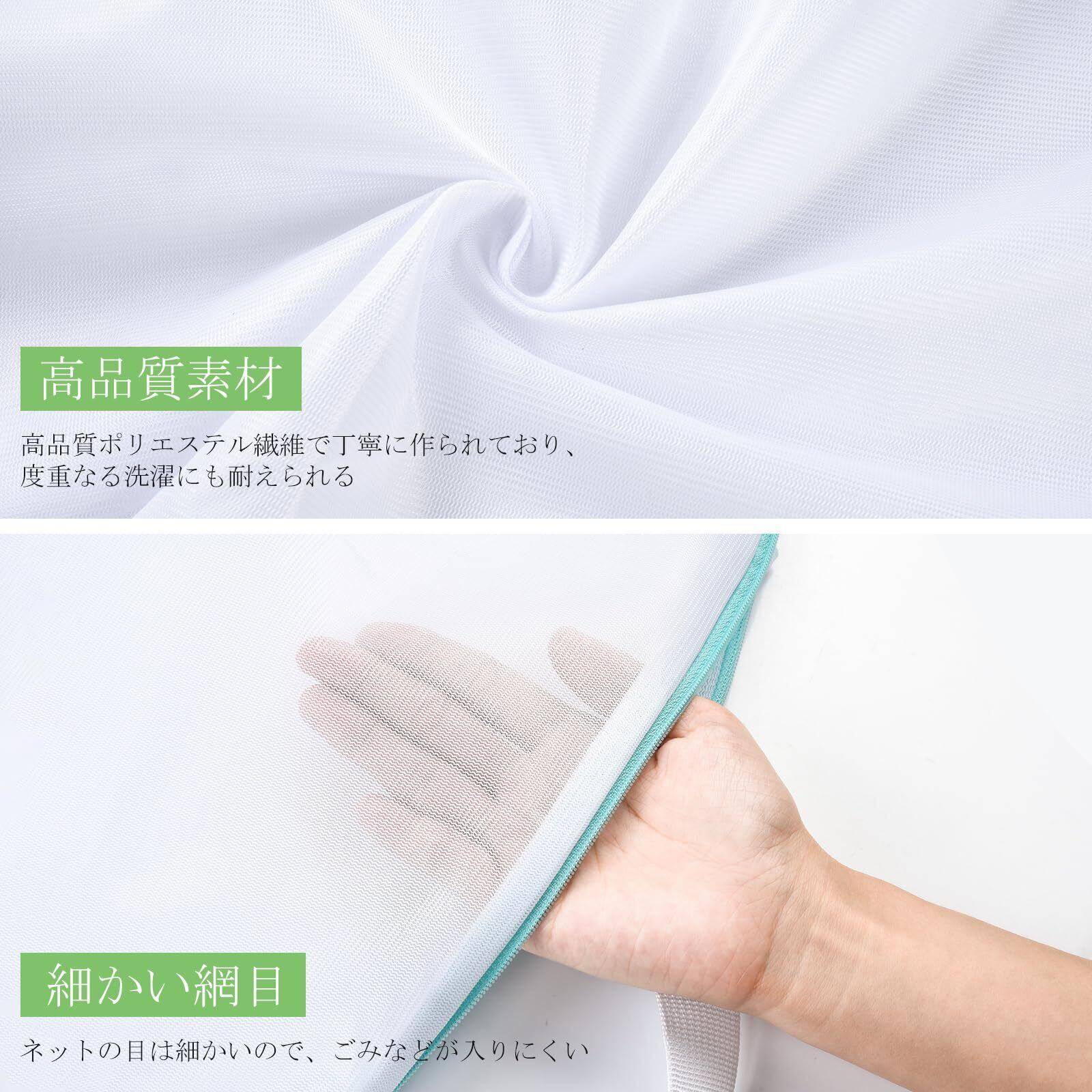 【細かい綱目】洗濯ネットは丈夫で水切りの良いメッシュ生地使用、均一でしっかりしていて、目も粗すぎず細かすぎず、ちょうどいいサイズの穴で汚れを逃してくれます。(ご注意:洗濯物をいっぱいに詰め込まず、洗濯ネットの2/3が汚れ落ち良い、きれいに洗濯できる最適な容量です。)