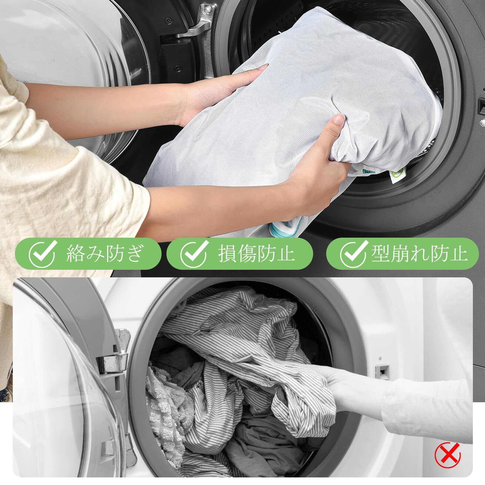 【40x50cm 2枚入り 洗濯ネット】サイズ:40x50cm セット:2枚入り 素材:ポリエステル 洗濯機/乾燥機対応。 洗浄力を発揮しながら衣類を守り、衣服の寿命を伸ばします。
