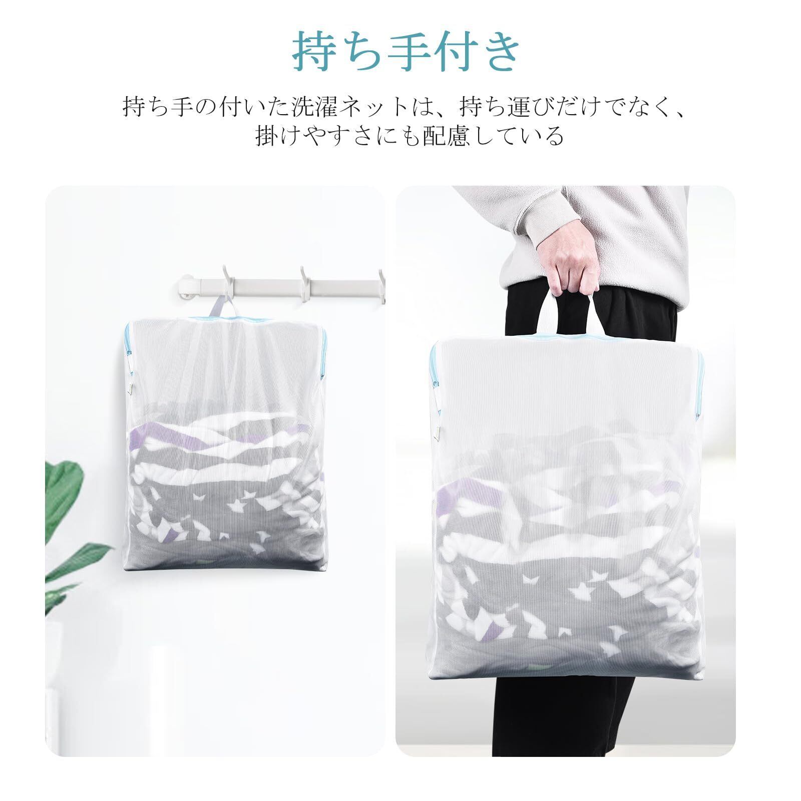 【多用途】布団、毛布、カーテン、枕、バスタオル、ペットマット、複数のセーター、コート、ジャケット、ズボン、ぬいぐるみ、寝具等の大物も洗えます。洗濯用の以外に、普段の衣類収納用、GYM用ジムバッグ、 水泳用温泉バッグ、スパバッグ 、旅行ポーチとして使用可能です。ご注意:洗濯ネットの7割ぐらい衣類を入れが適応です。洗濯機もいっぱいに詰め込まず、7割ぐらいの方が汚れ落ち良い、きれいに洗濯する。洗濯する前に、しっかりファナースを保護カバーの中に締めてください。