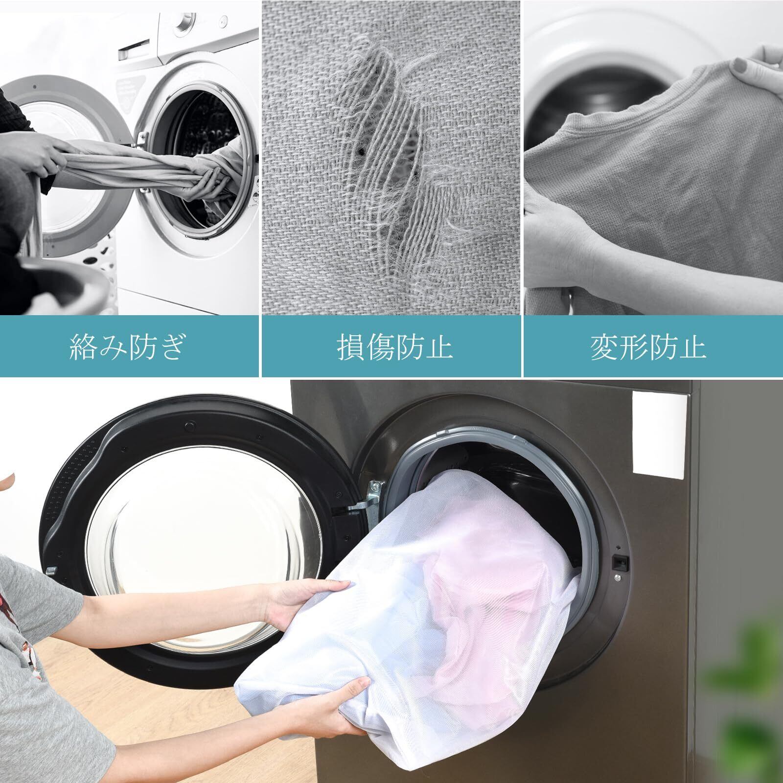 【絡まりを防ぐ】ランドリーネットは衣服の絡まりを防ぎ、衣服の型崩れや損傷を防ぎ、 衣服の変形防止のための理想的な選択肢です。ネット袋を使って洗濯をすることで、服が絡まる心配がなく、服の形をよりよく保つことができます。