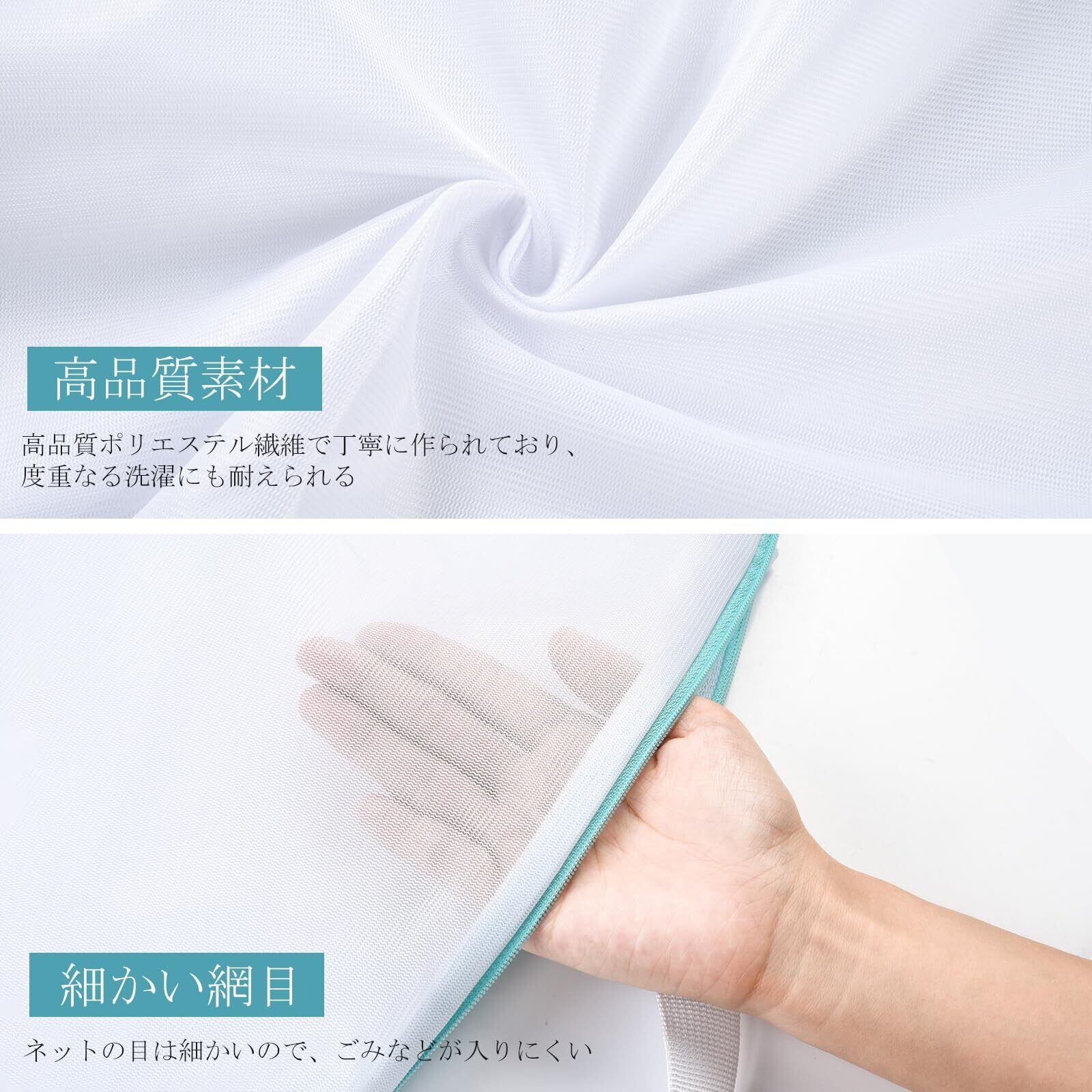 【高品質メッシュ】洗濯物ネットには丈夫なメッシュ生地を使用し、水切りの良いメッシュ生地を使用、均一でしっかりしていて、目も粗すぎず細かすぎず、ちょうどいいサイズの穴で汚れを逃してくれます。
