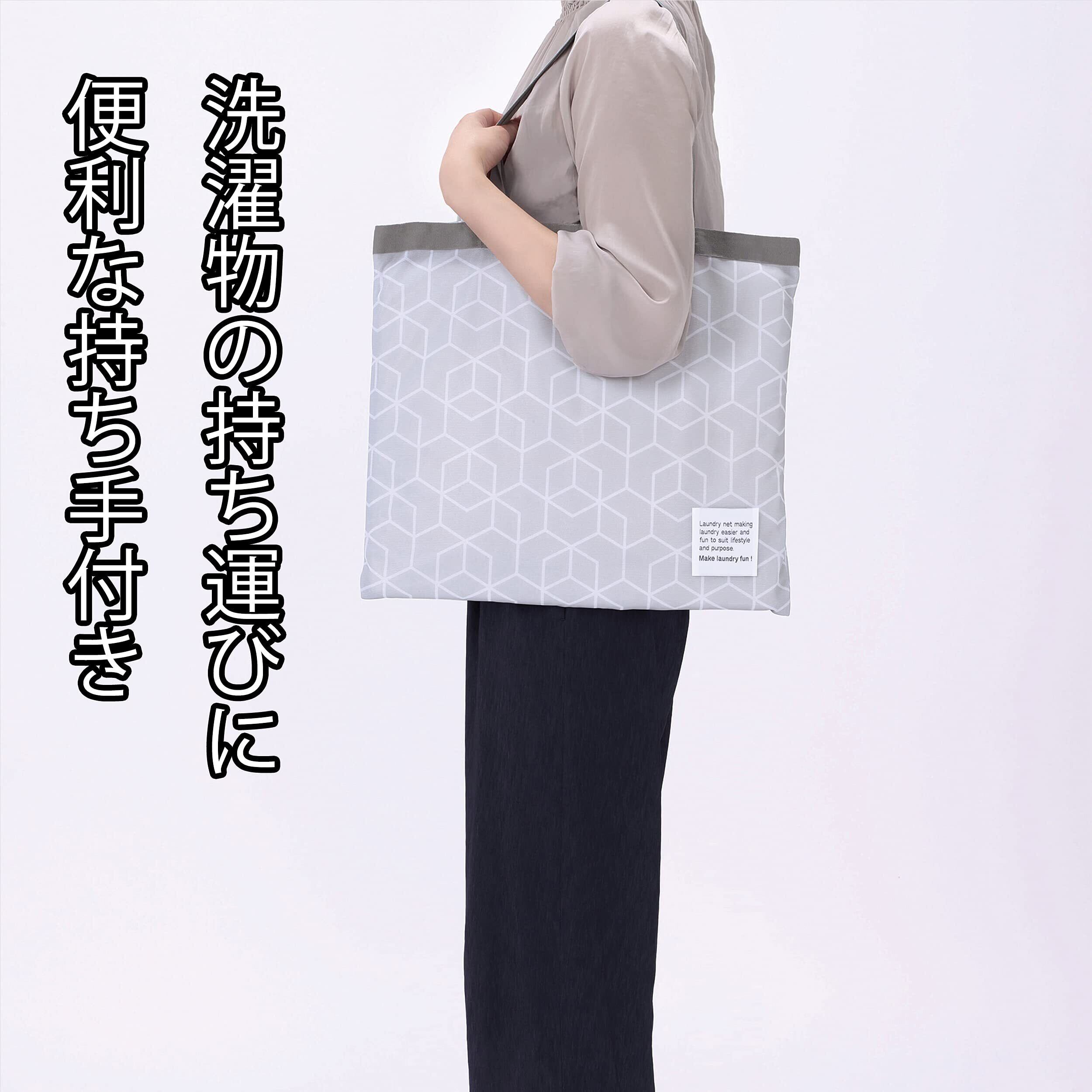 ●洗濯物の持ち運びに便利な持ち手付で、洗濯物を入れたバッグまるごと洗濯機で洗える洗濯ネット
