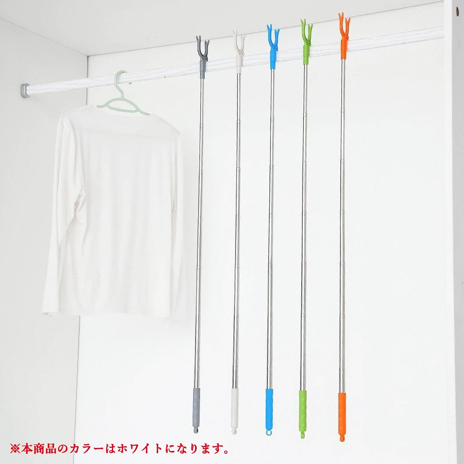 【伸縮リーチポール】自由に伸ばすことができるので、洗濯も楽にできます最短31cm、最長108cm、使用していないときに戻してスペースを節約できます