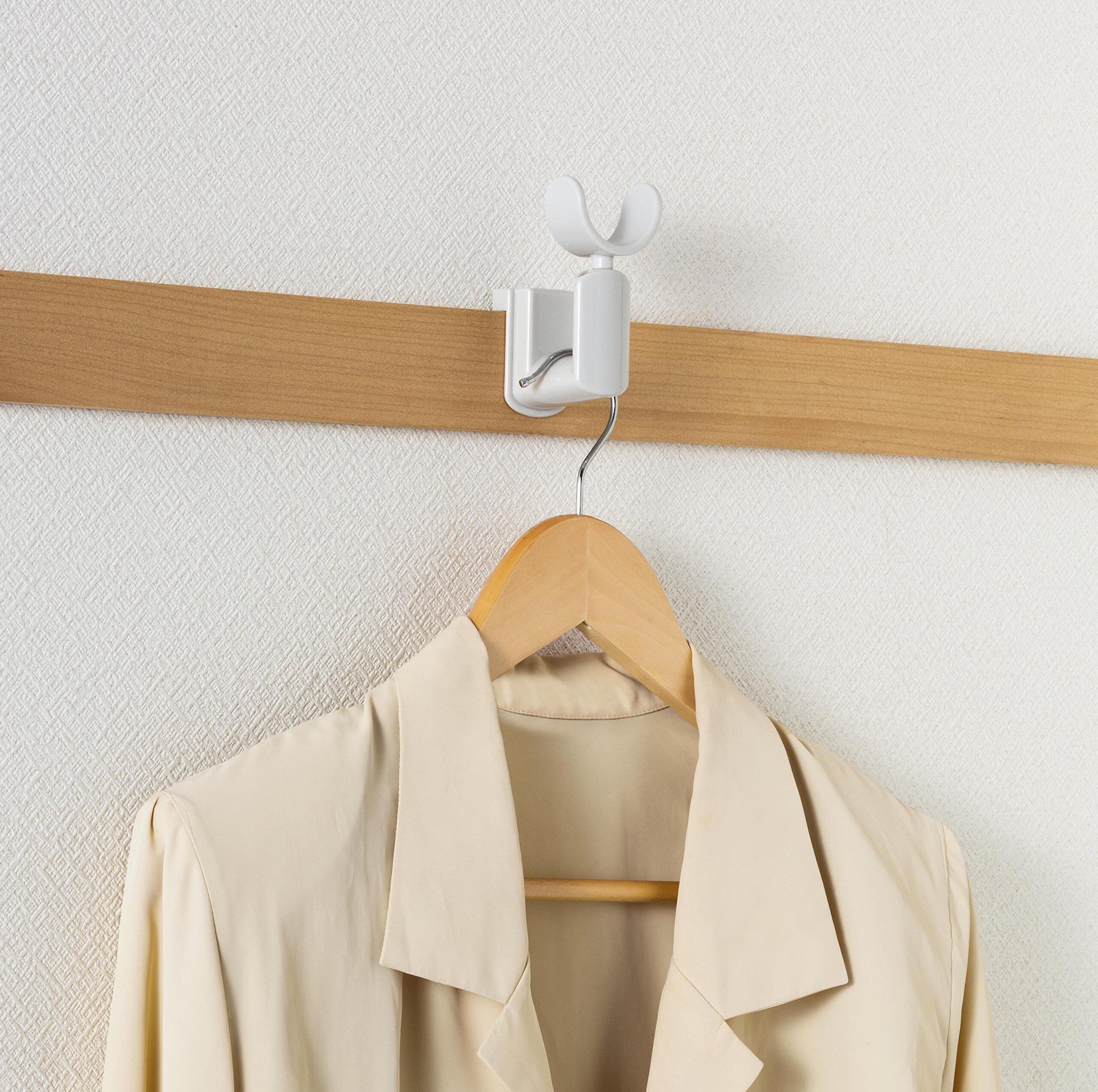 かもいなげしを利用して室内のものほし竿受けにできます。 ○かもいなげしを利用して室内で物干し竿がかけられる○自由な角度に向けられる首フリ機能ハンガー受けも可能※耐荷重(約):3kgまで